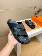 HM Men's Kazimir Sandals Black Green Calfskin 735742