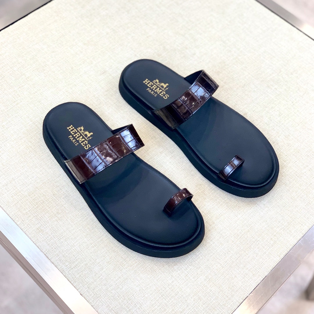 HM Men's Open-toe Sandals Brown Rubber Sheepskin 561659