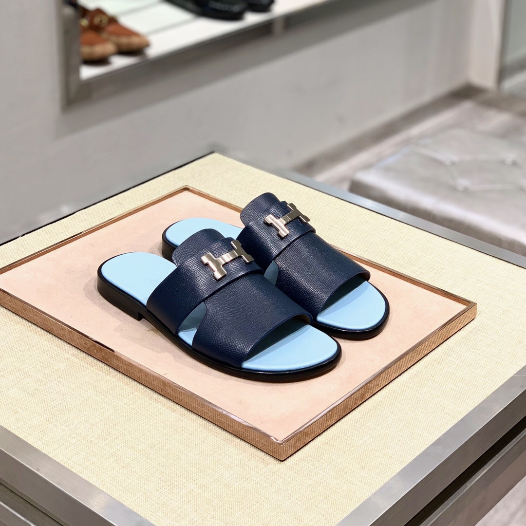 HM Men's Slide Navy Blue Cowhide 567150