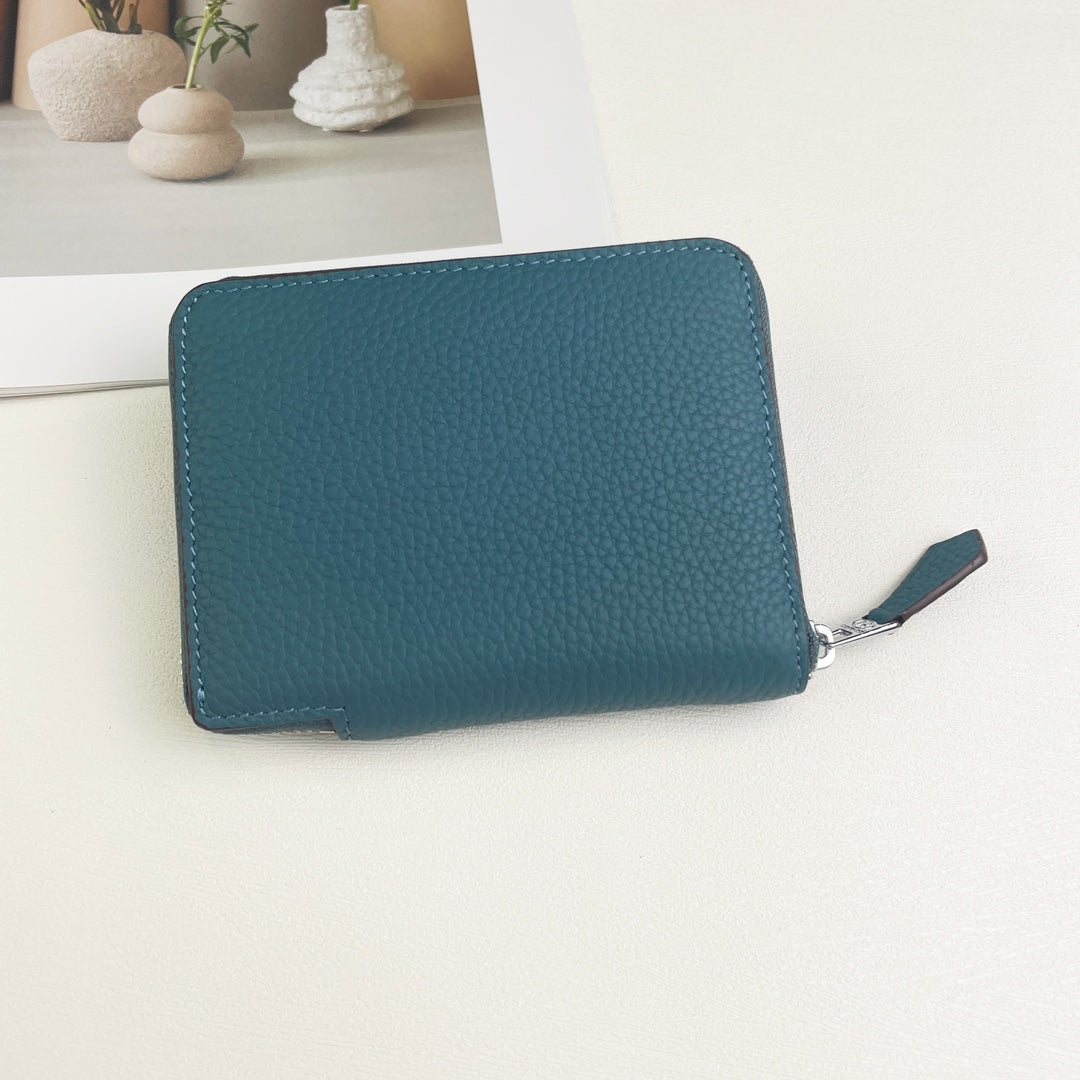 HM SILK'IN HOLED SHORT WALLET 11.5 CERULEAN GRAINED CALFSKIN