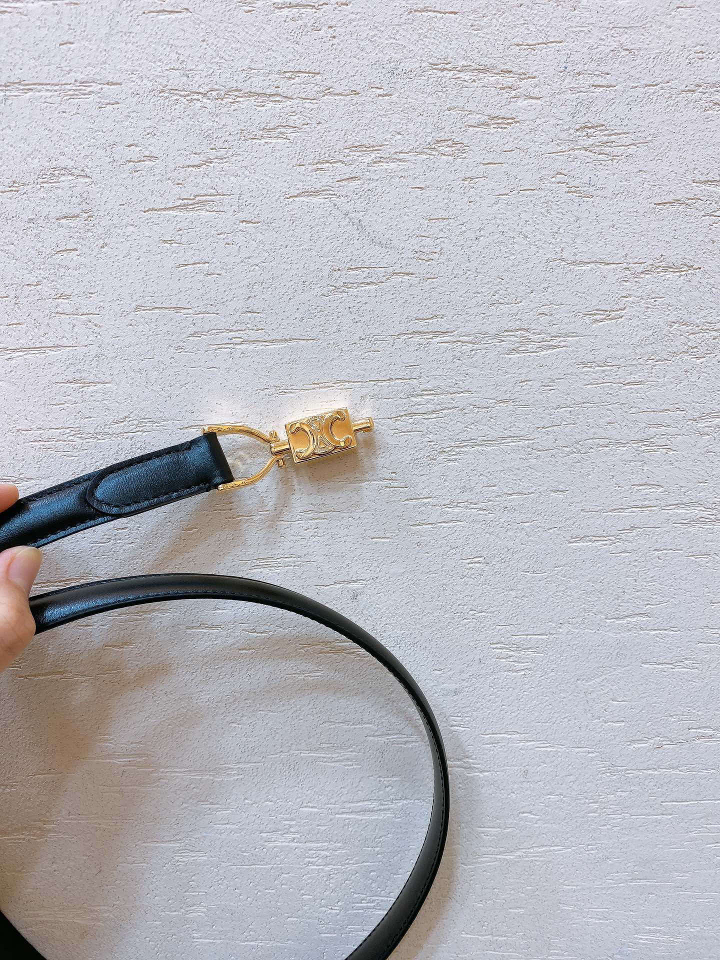 Hook & Loop 20mm TRIOMPHE Logo Square Adjustable Belt Black Calfskin Ghw