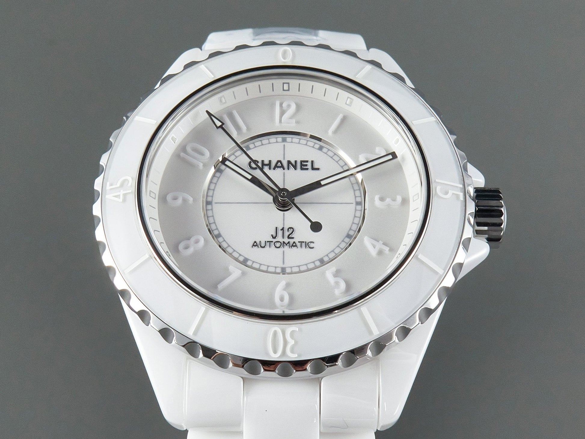 J12 Automatic White Ceramic White Numerals Black White Hands White Dial