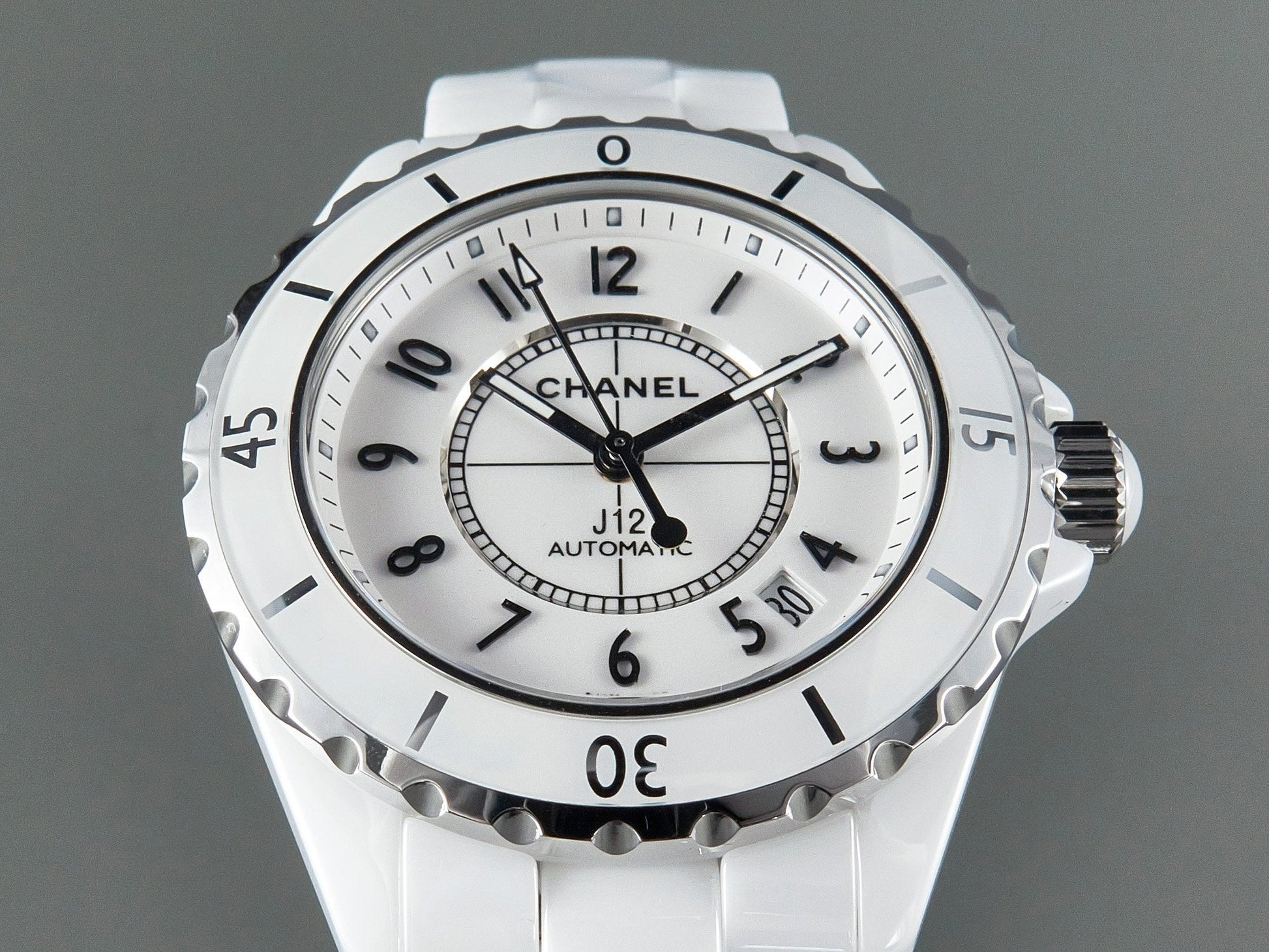 J12 Date Automatic White Ceramic Black Numerals White Dial