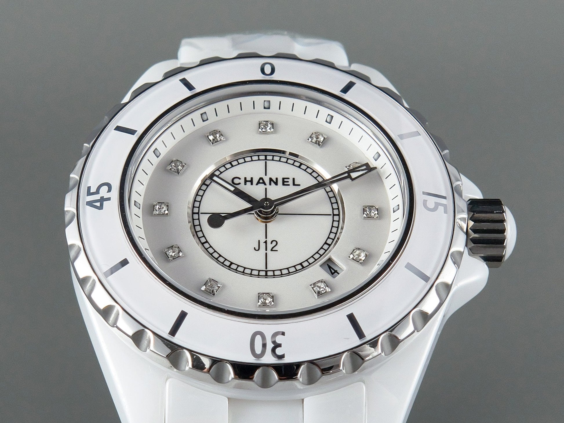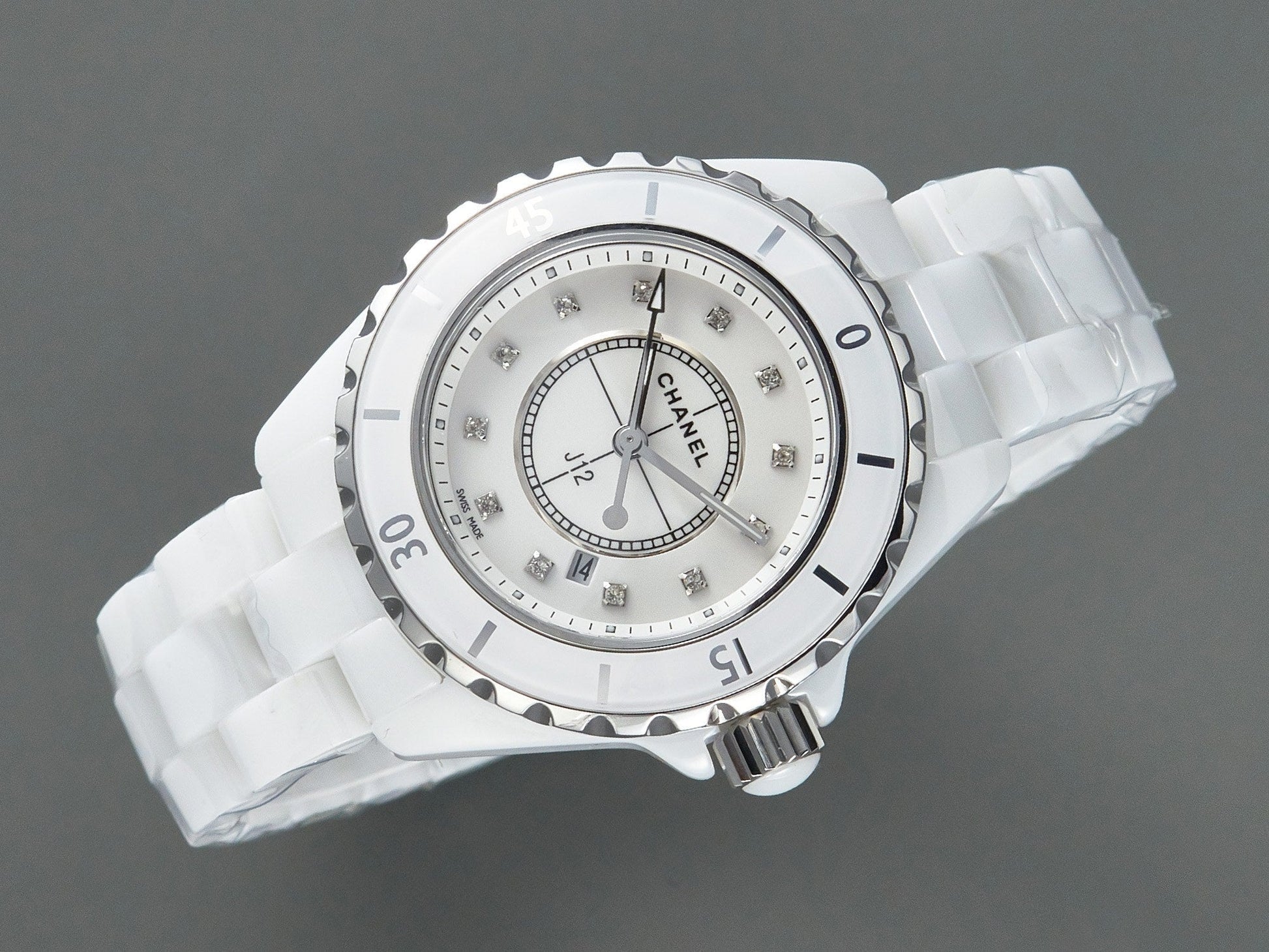 J12 Date Quartz White Ceramic Diamond Numerals White Dial
