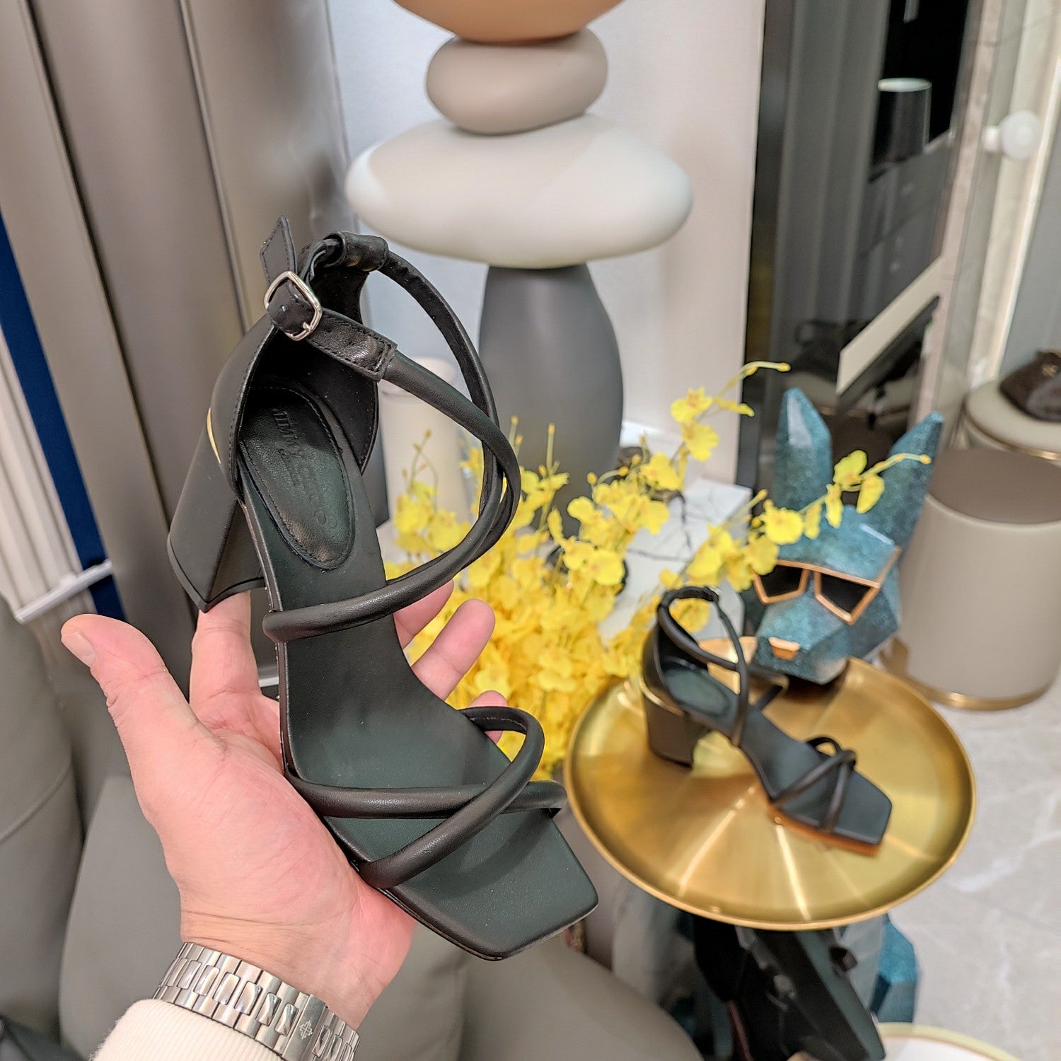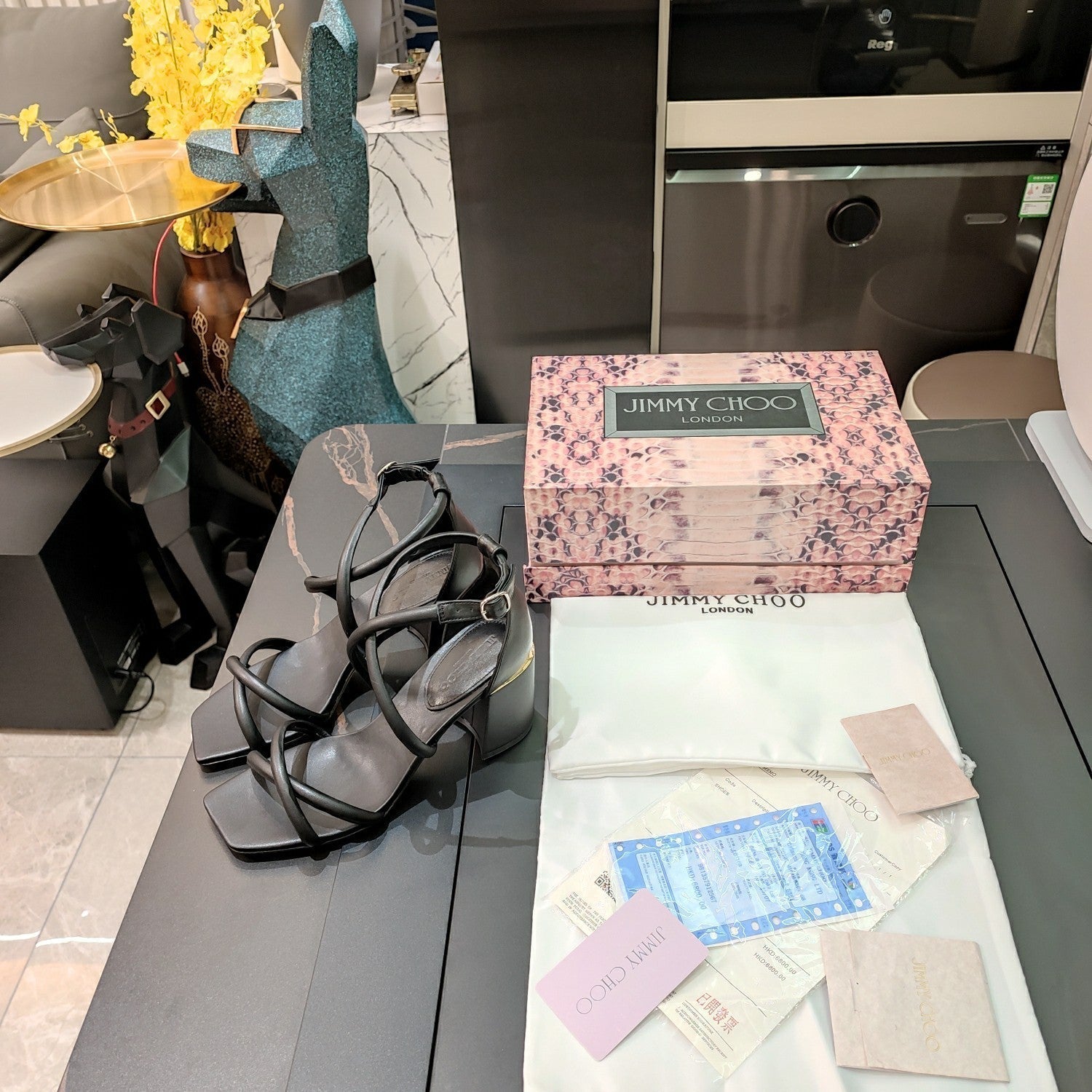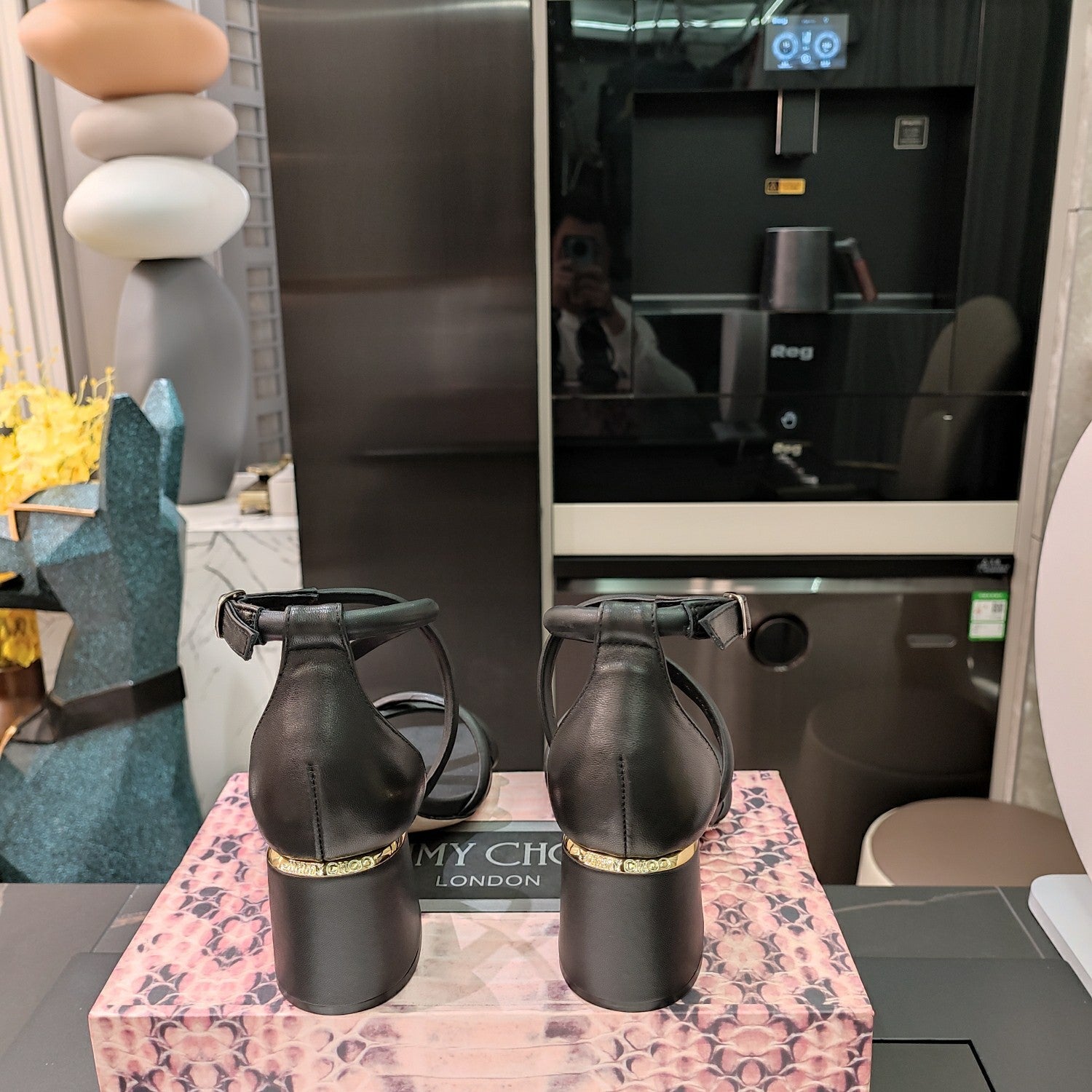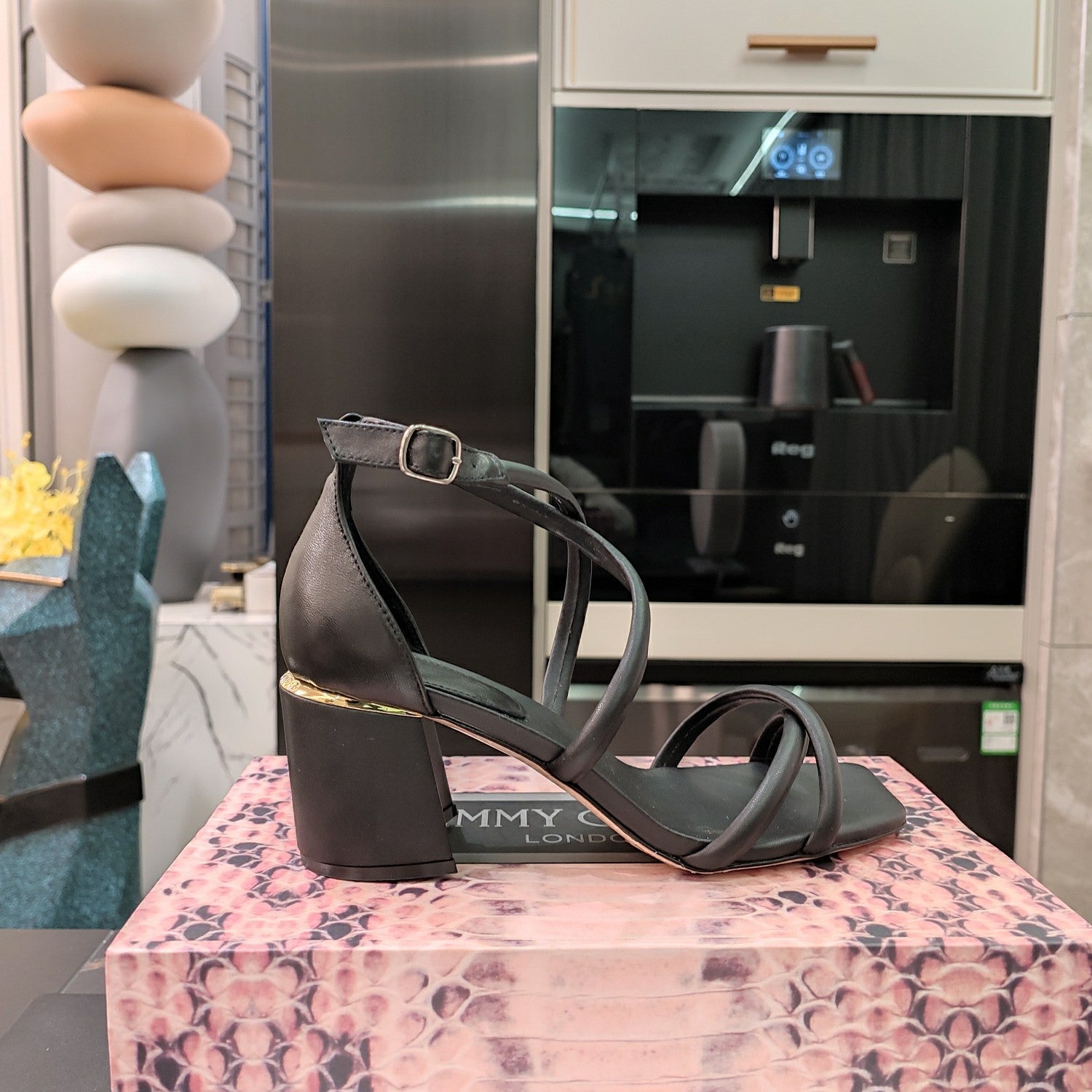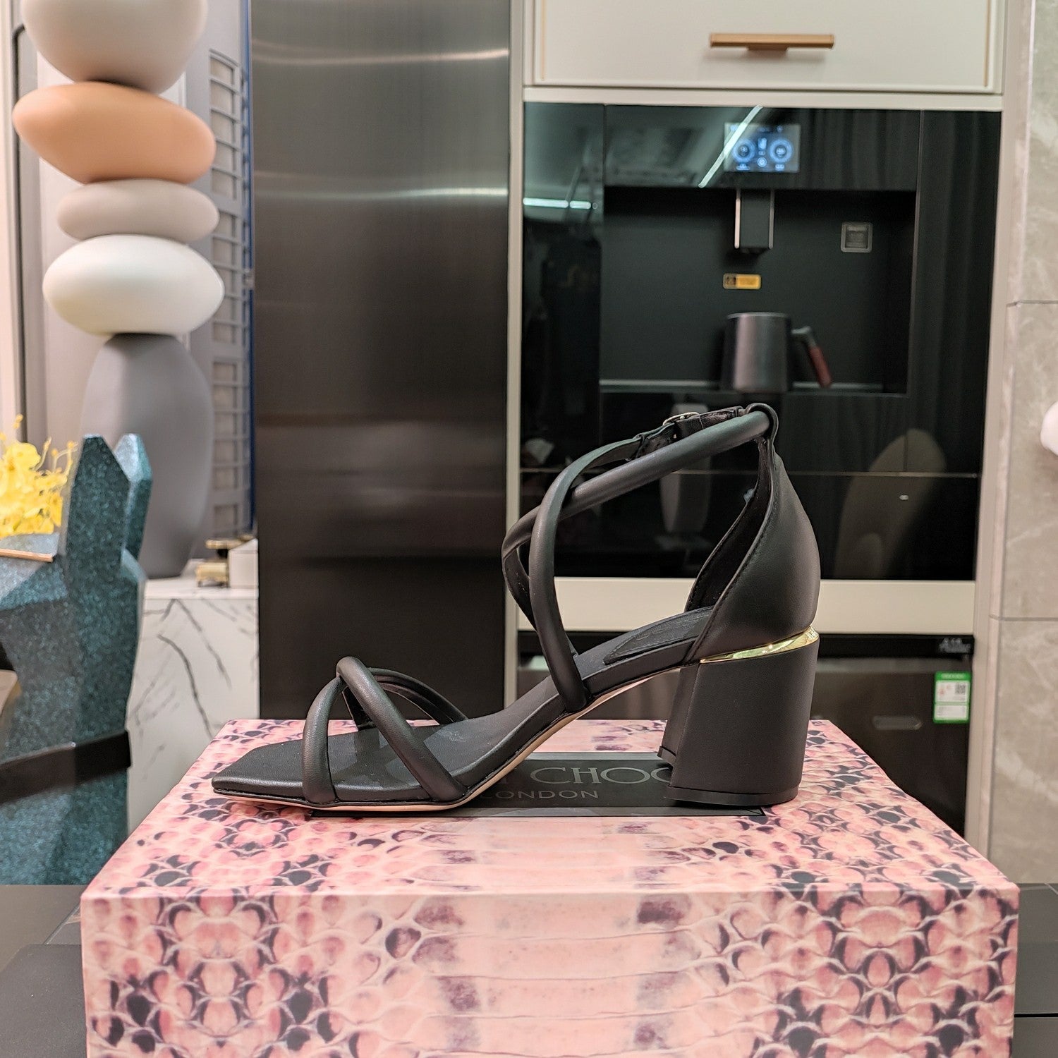 Jimmy 25 Sandal Heels Black Cowhide 240086