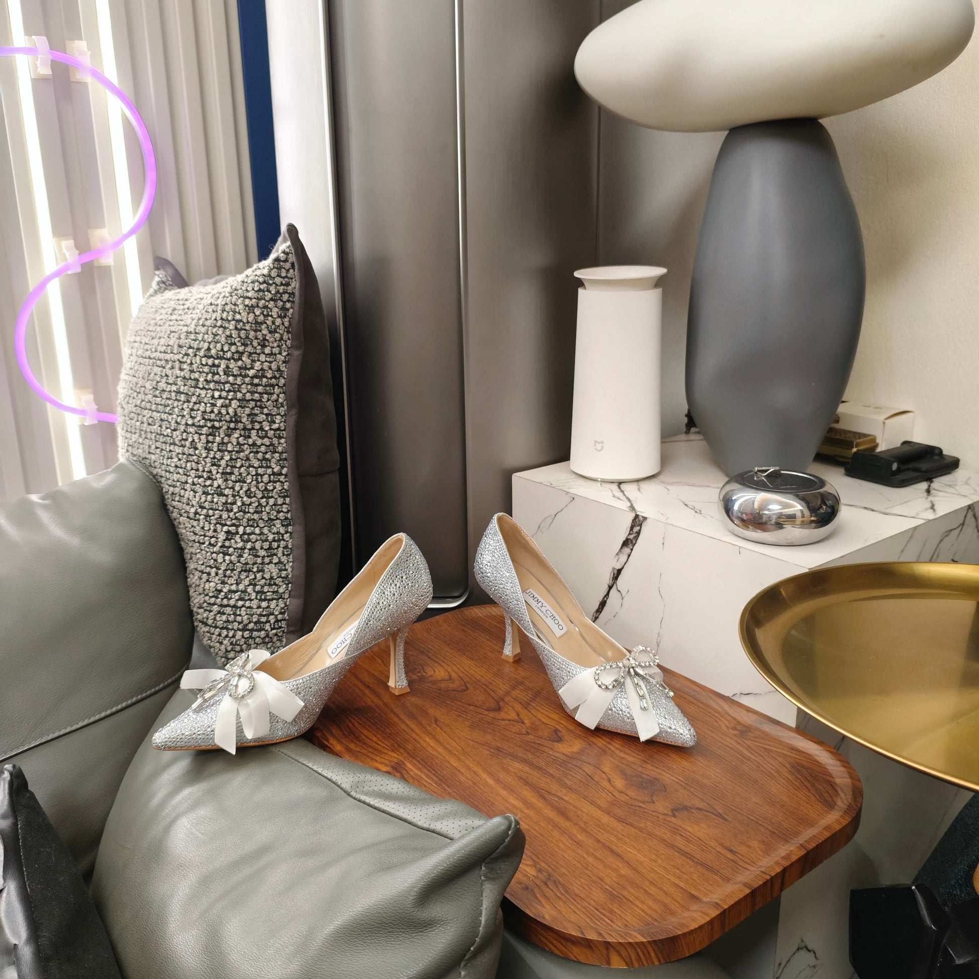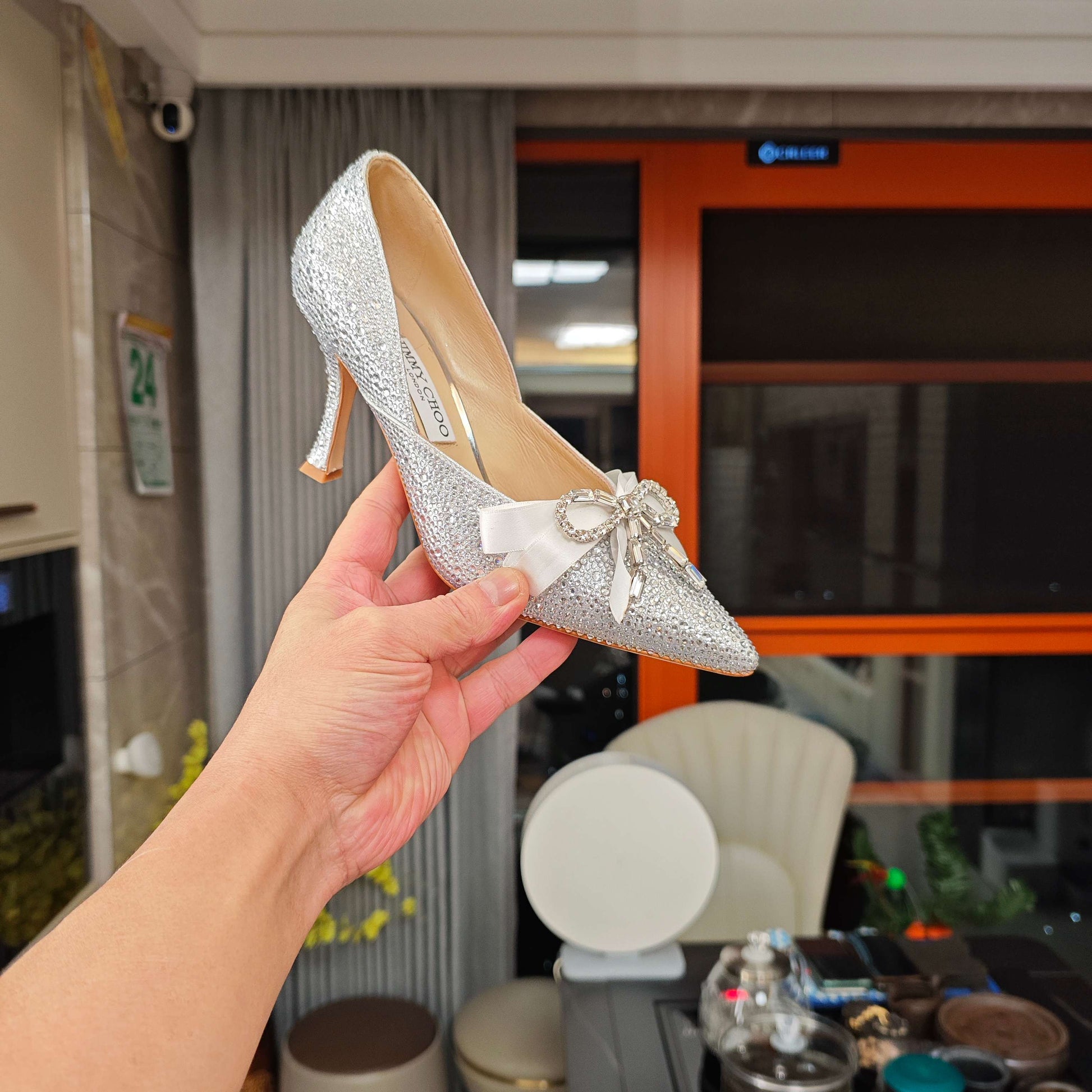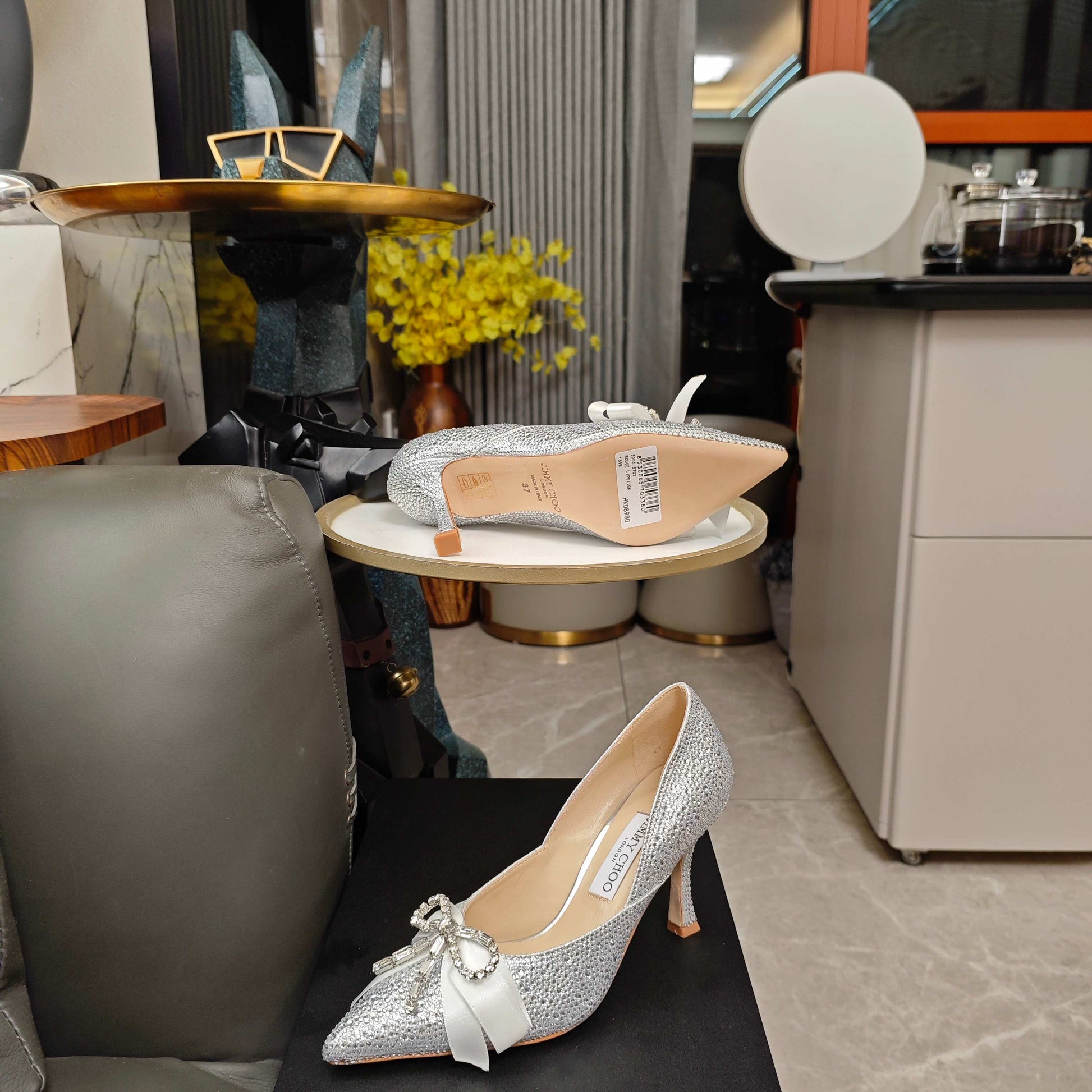 Jimmy 26s Crystal Pumps 85 Sliver Silk Satin Cowhide 596332