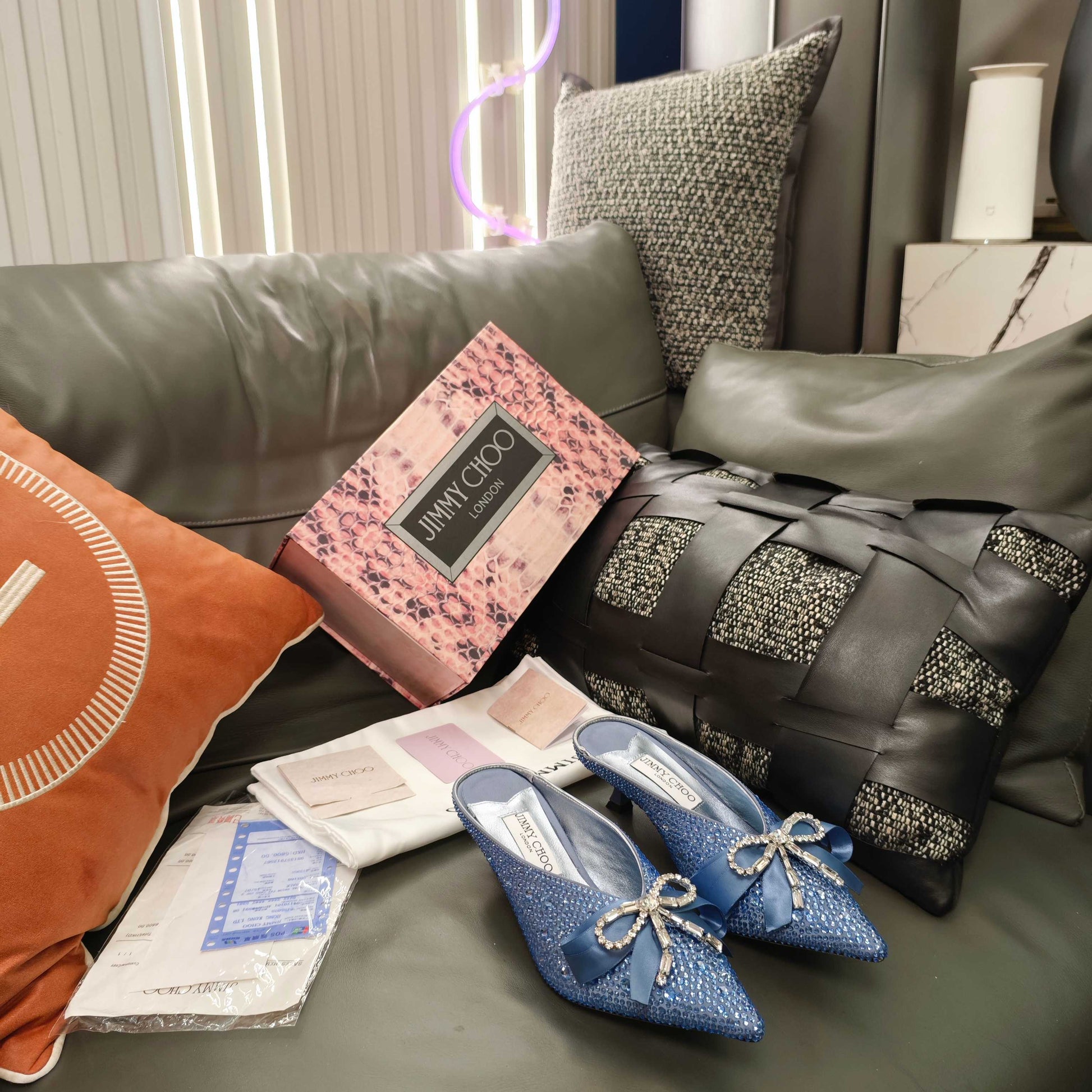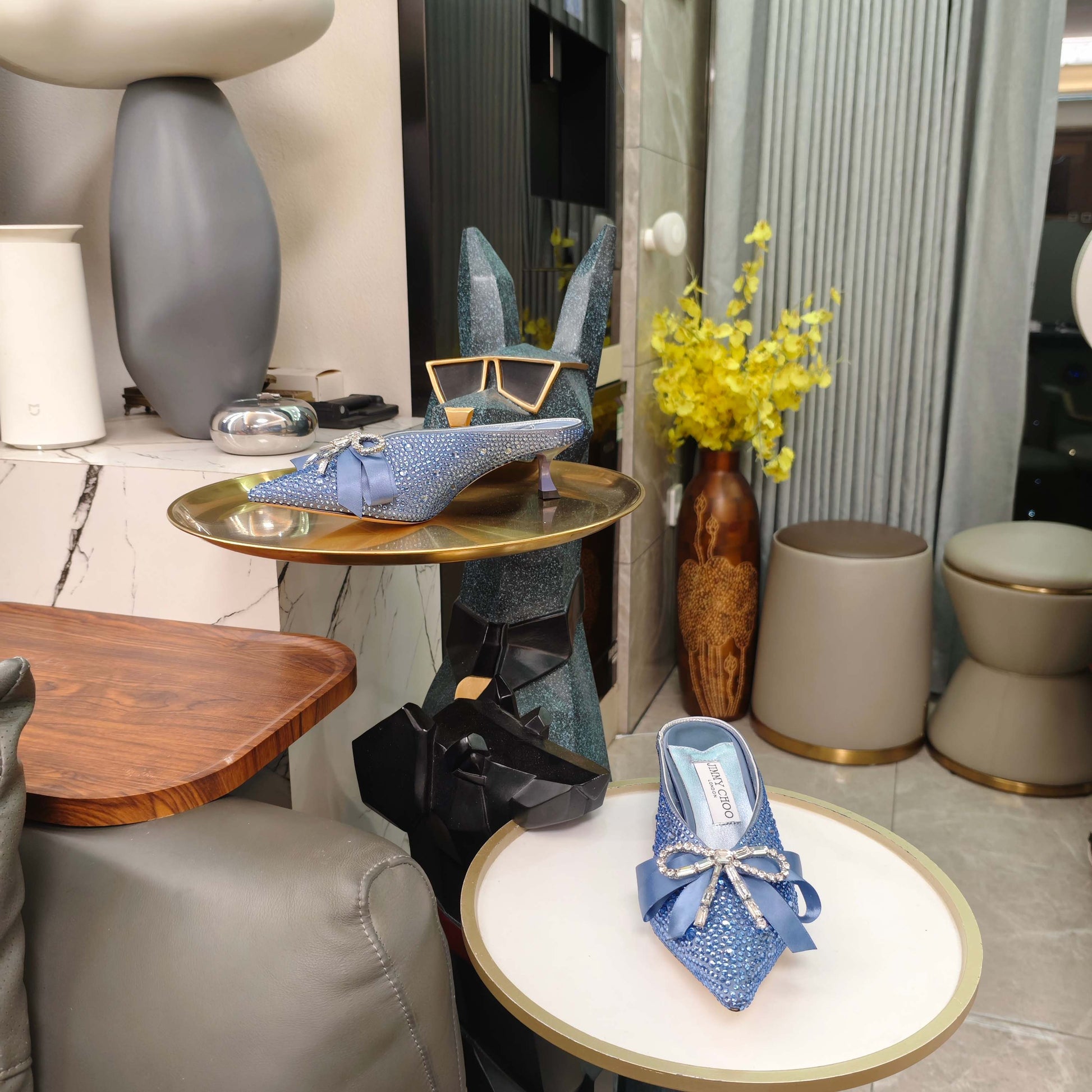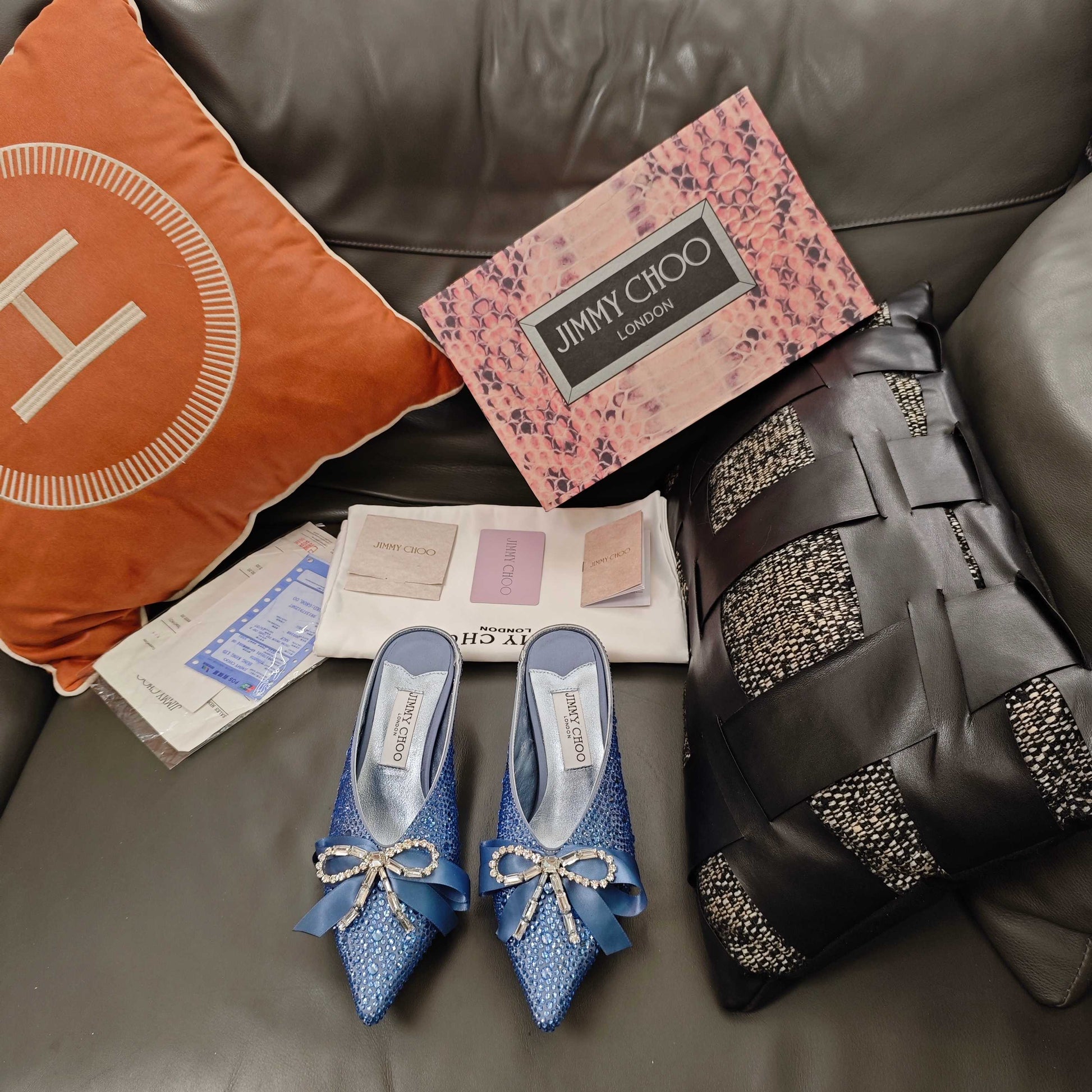 Jimmy 26s Crystal Slipper 45 Blue Silk Satin Cowhide 596342