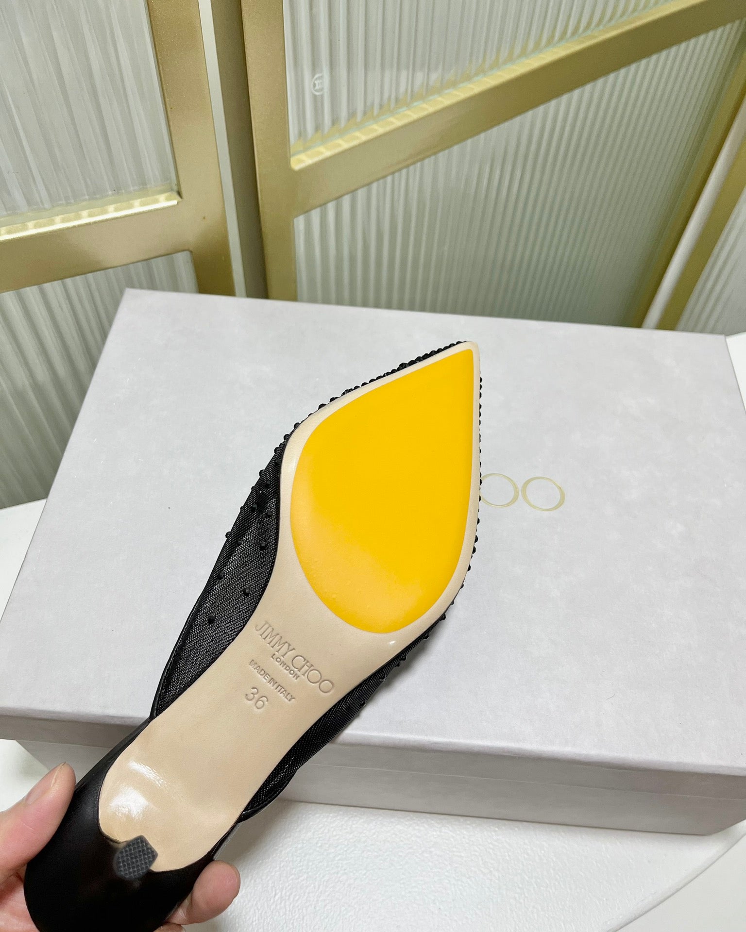 - Material: Mesh Fabric With Swarovski Crystal, Lambskin