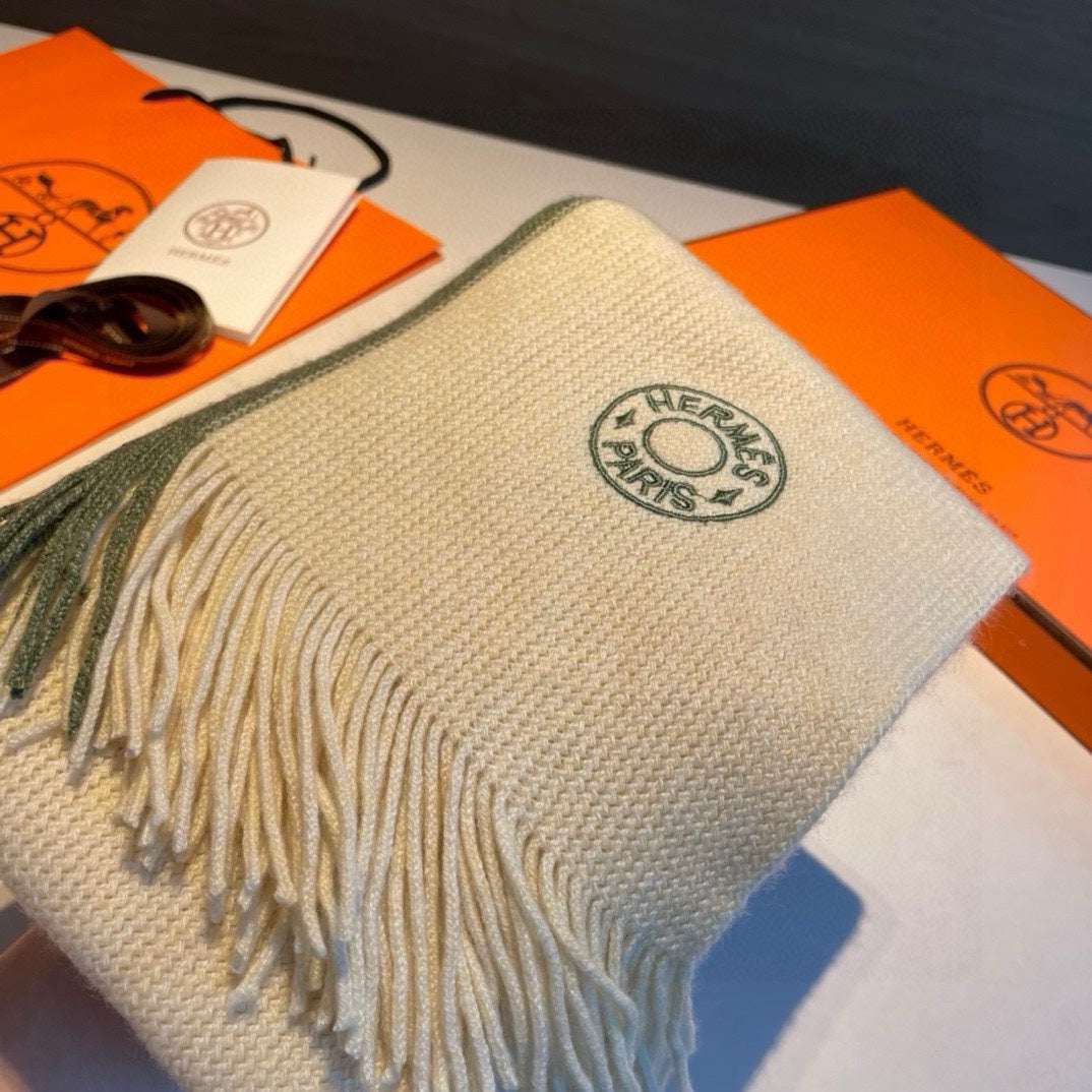 KNIT SCARF 180 IN JADE GREEN MIX WHITE CASHMERE