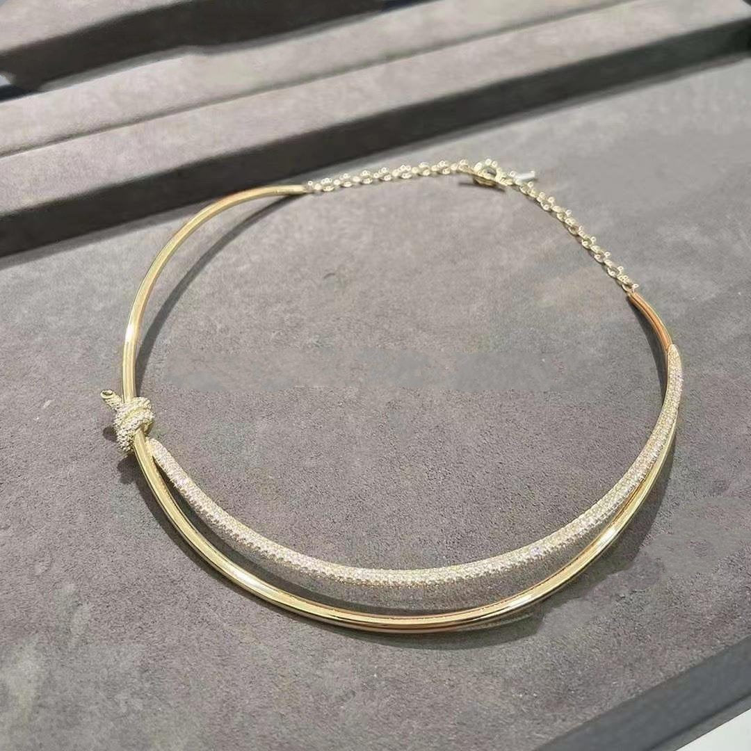 KNOT DOUBLE ROW NECKLACE IN YELLOW GOLD WITH DIAMONDS