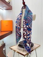 Le Jaguar Et Le Colibri Shawl 90 CM In Blue Colorful Silk Twill 274207