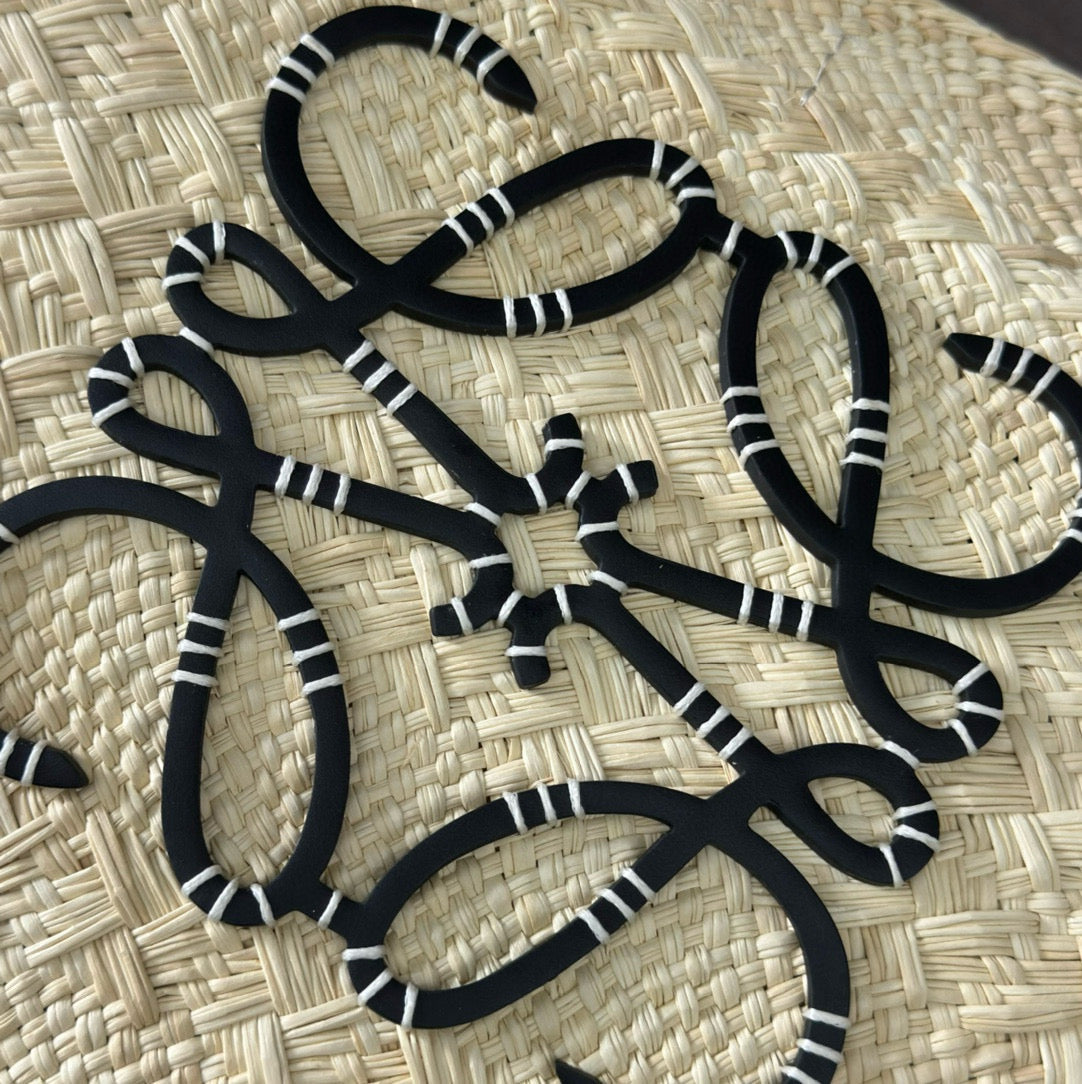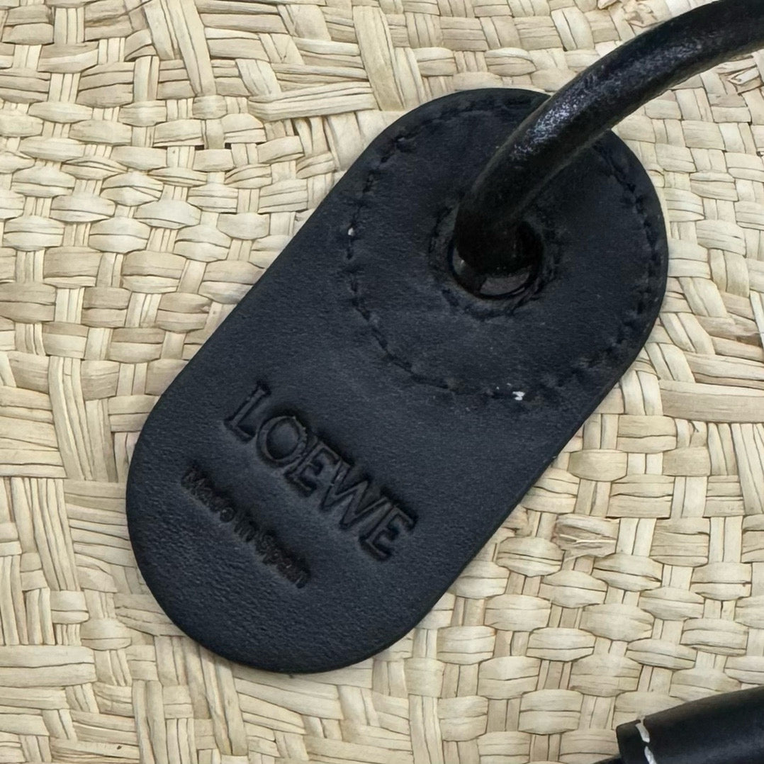 Loew Anagram Basket 46cm Beige Raffia Black Calfskin