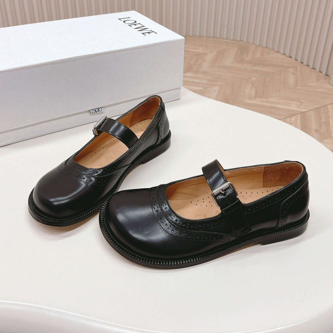 Loewe Campo Mary Jane Ballet Flat Black Cowhide