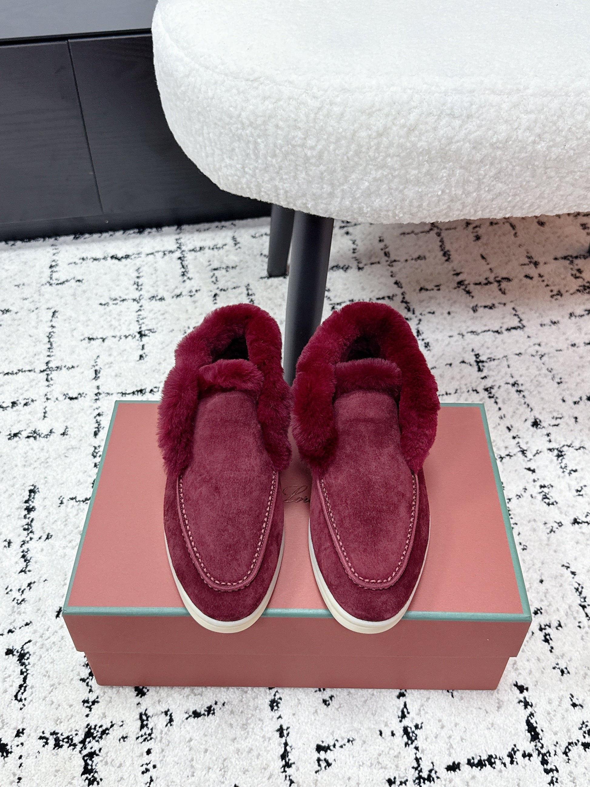 LP 26SS Open Walk Ankle Boot Burgundy Suede Fur 617383