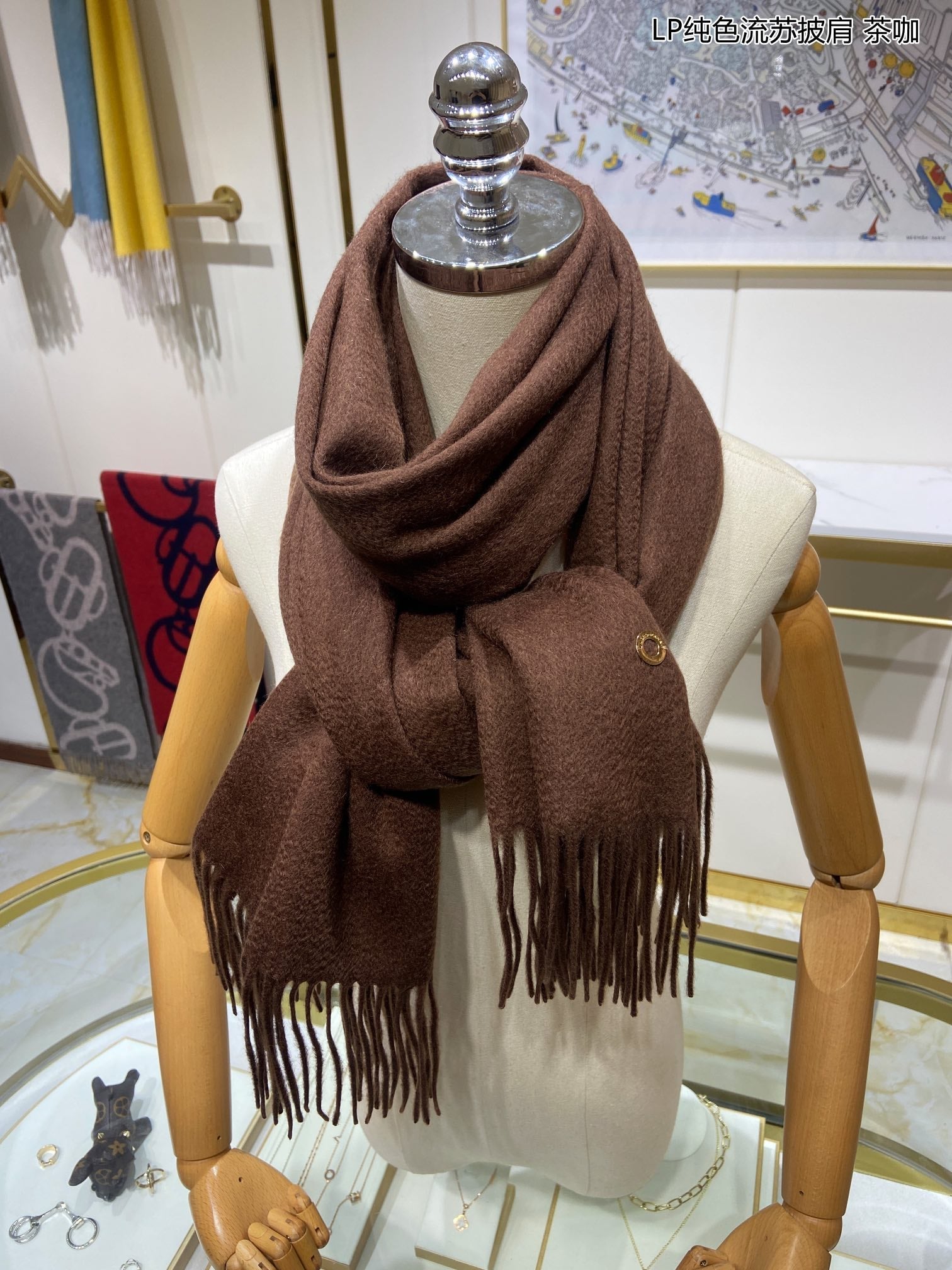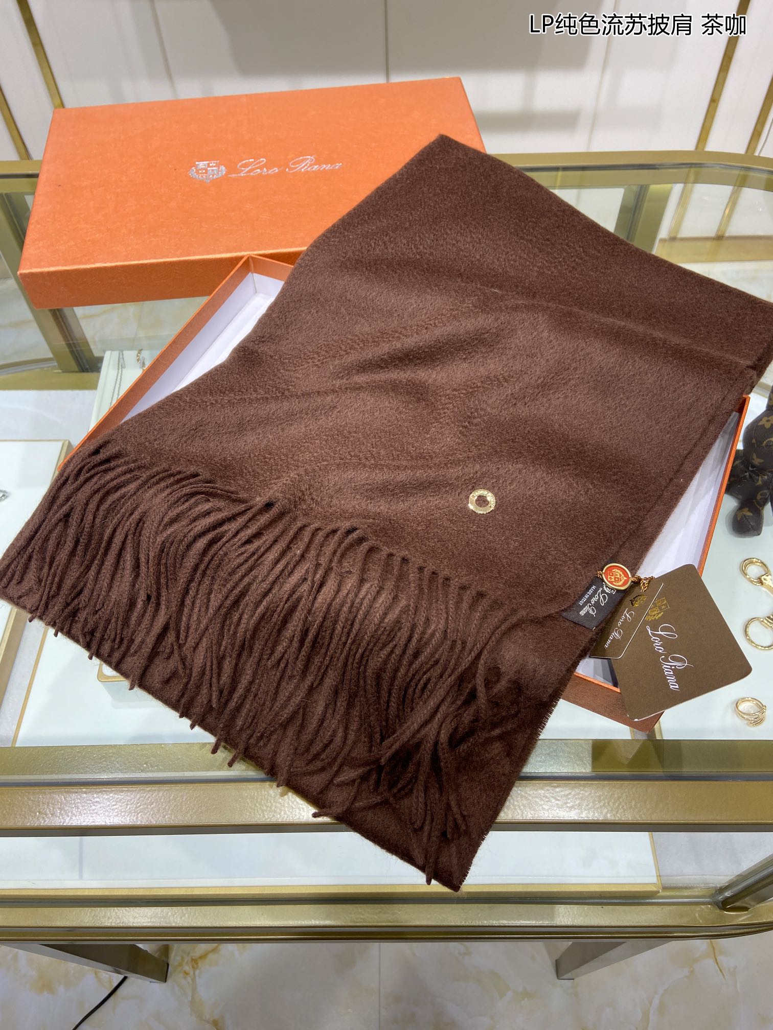 LP Grande Unita Scarf 200 CM In Cocoa Brown Cashmere 645521