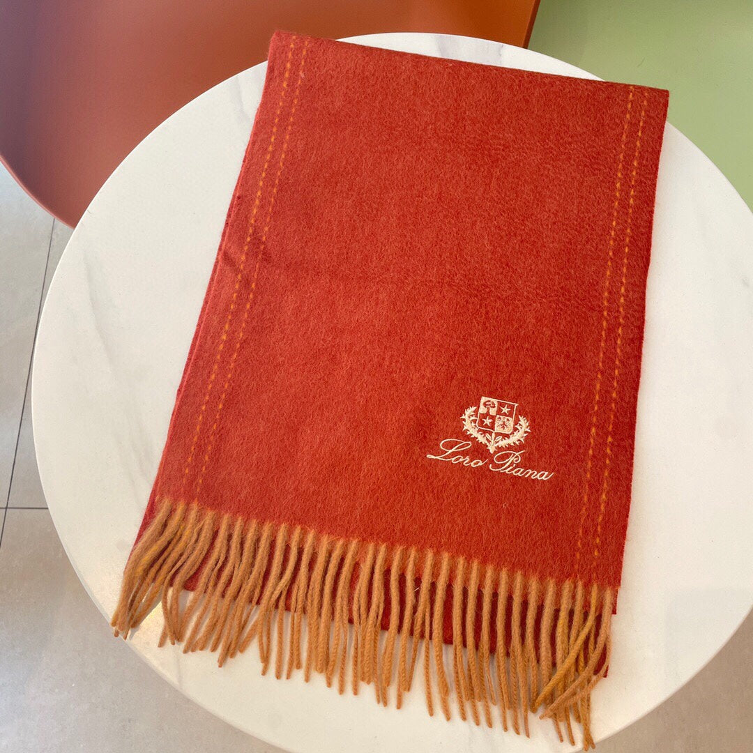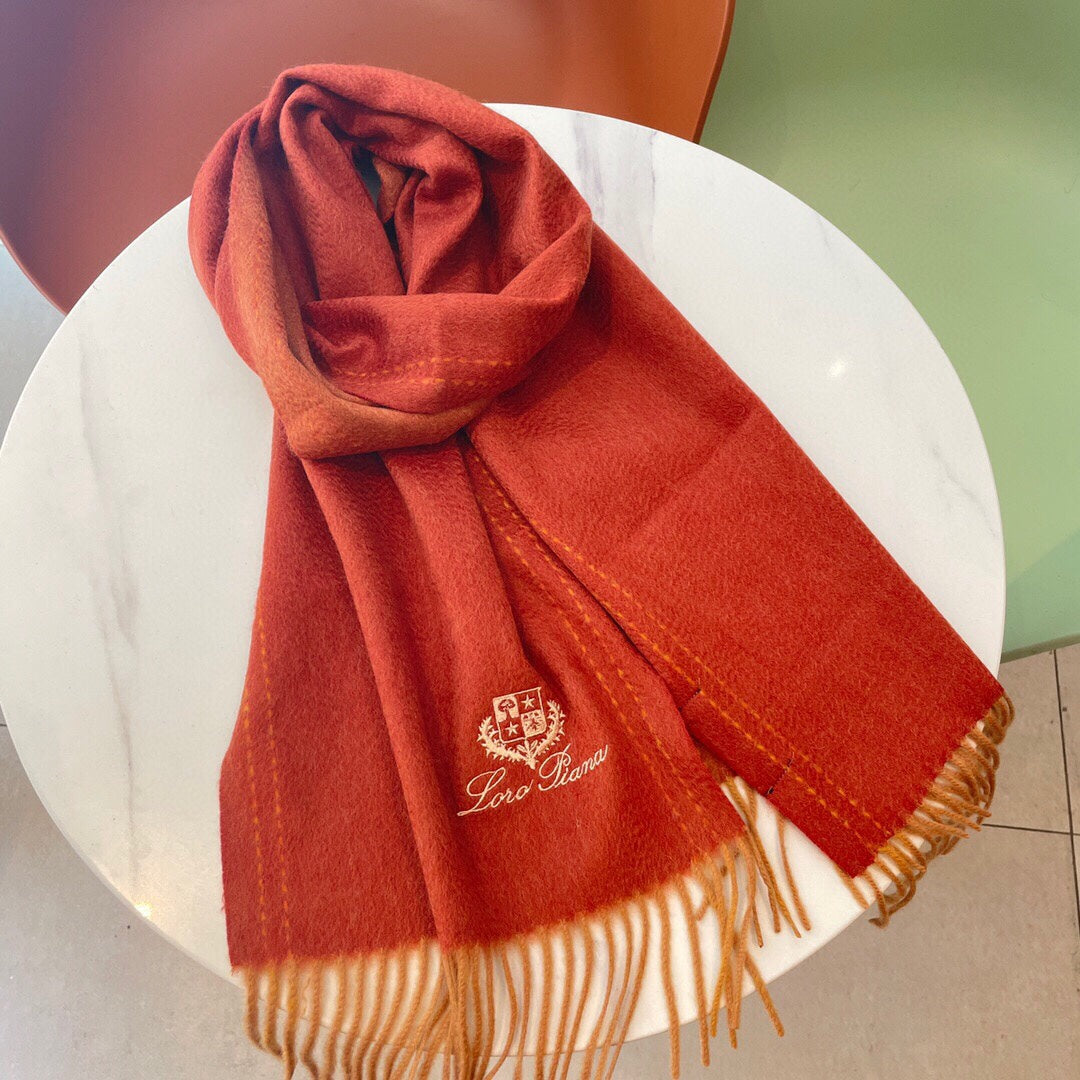 LP Grande Unita Scarf 200 CM In Red Orange Cashmere 705047