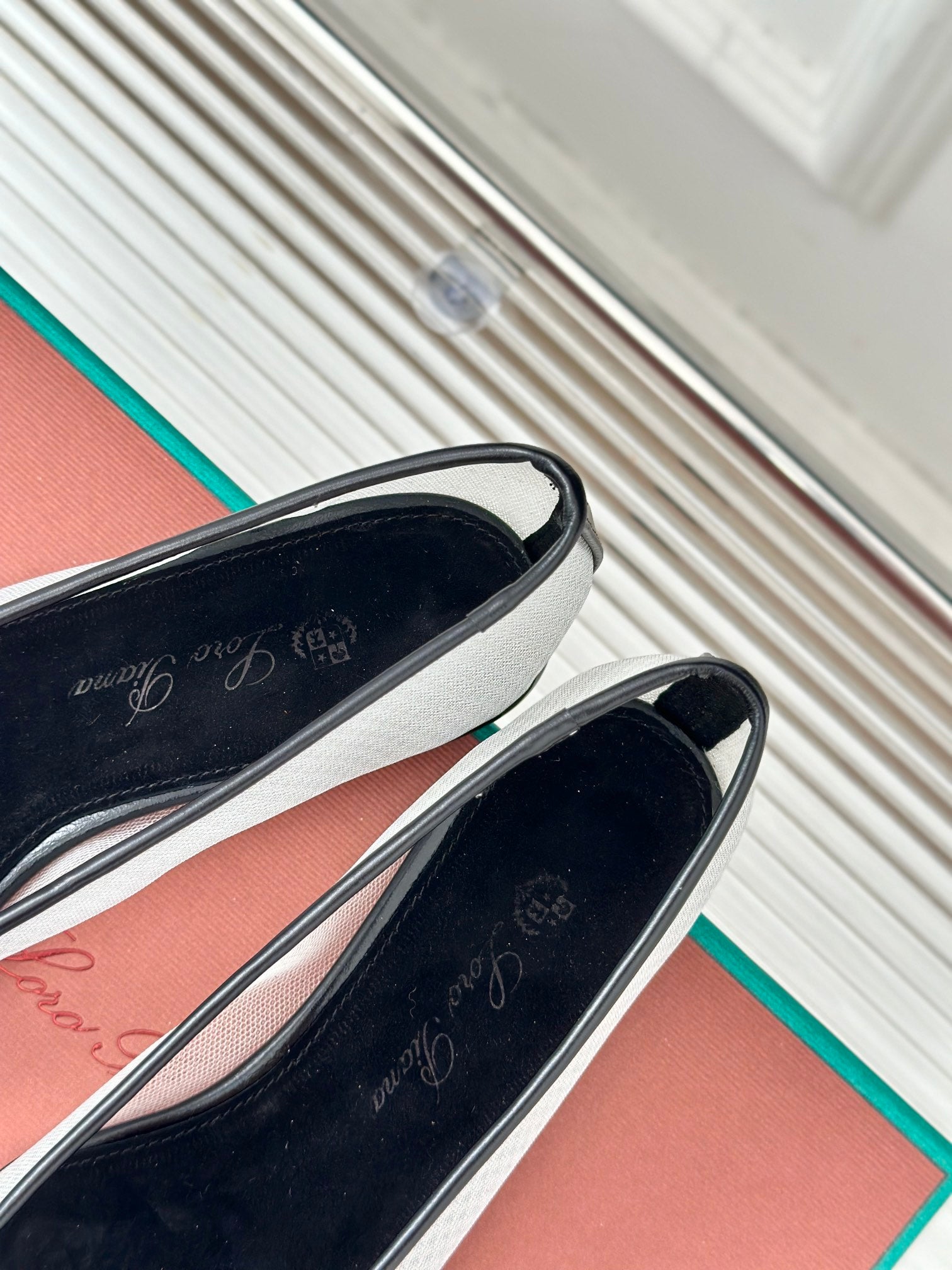 LP Primula Ballet Flat In White Mix Black Mesh Fabric With Suede Lining 989402