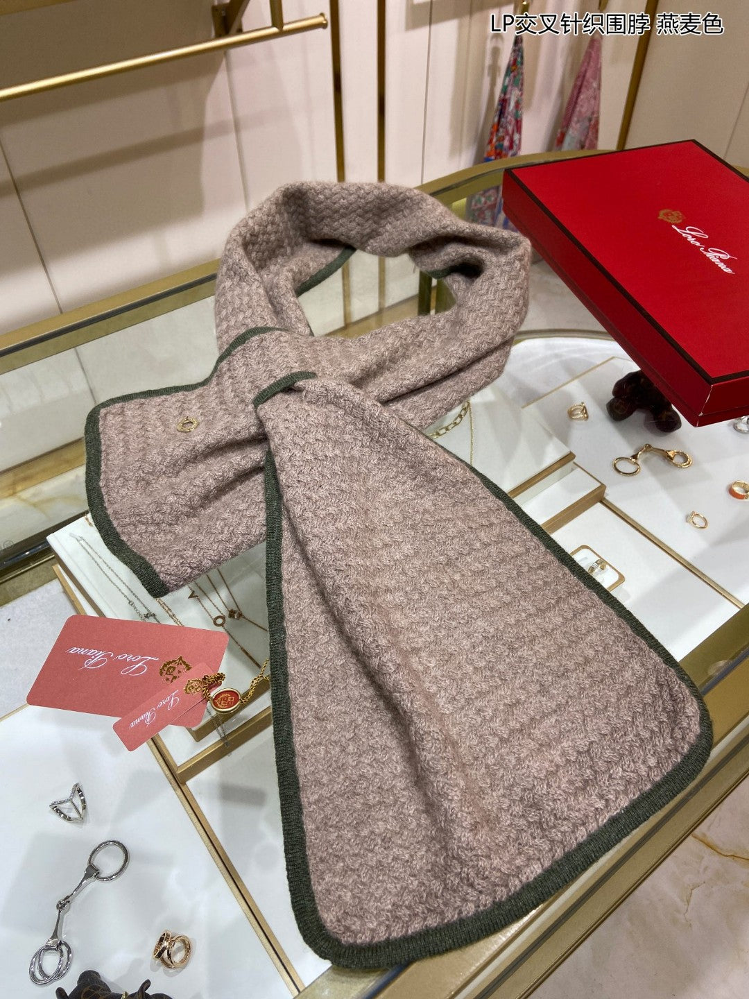 LP Scarf 125 CM In Earth Brown With Dark Green Border Cashmere 201758