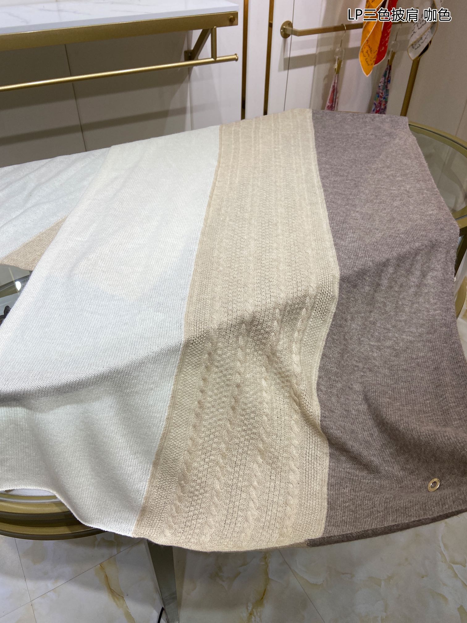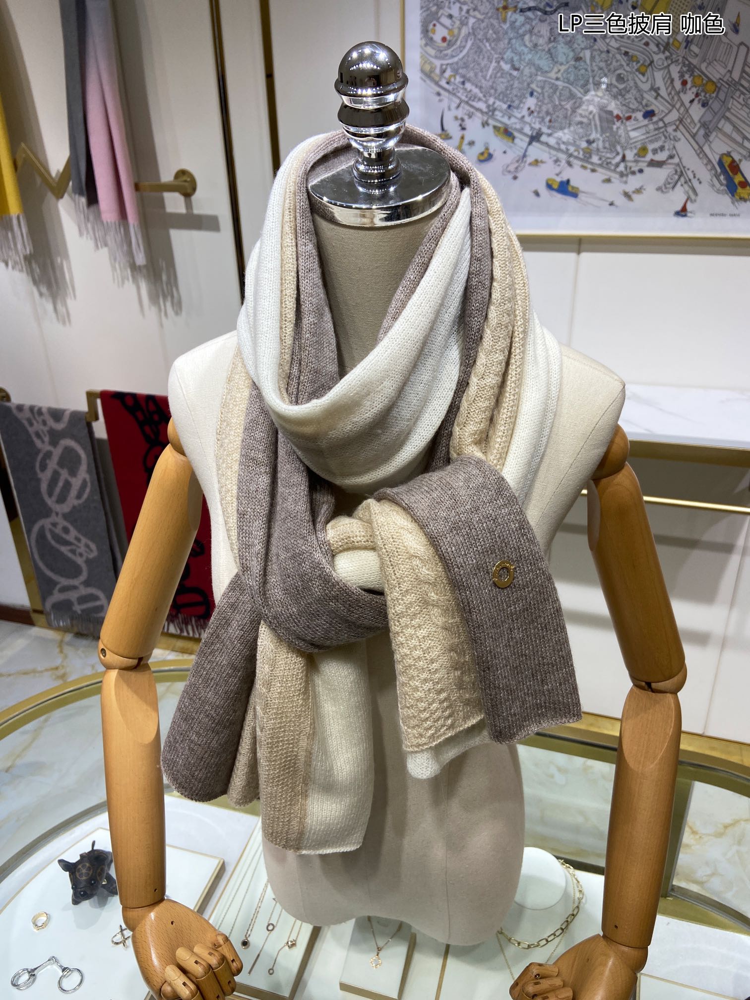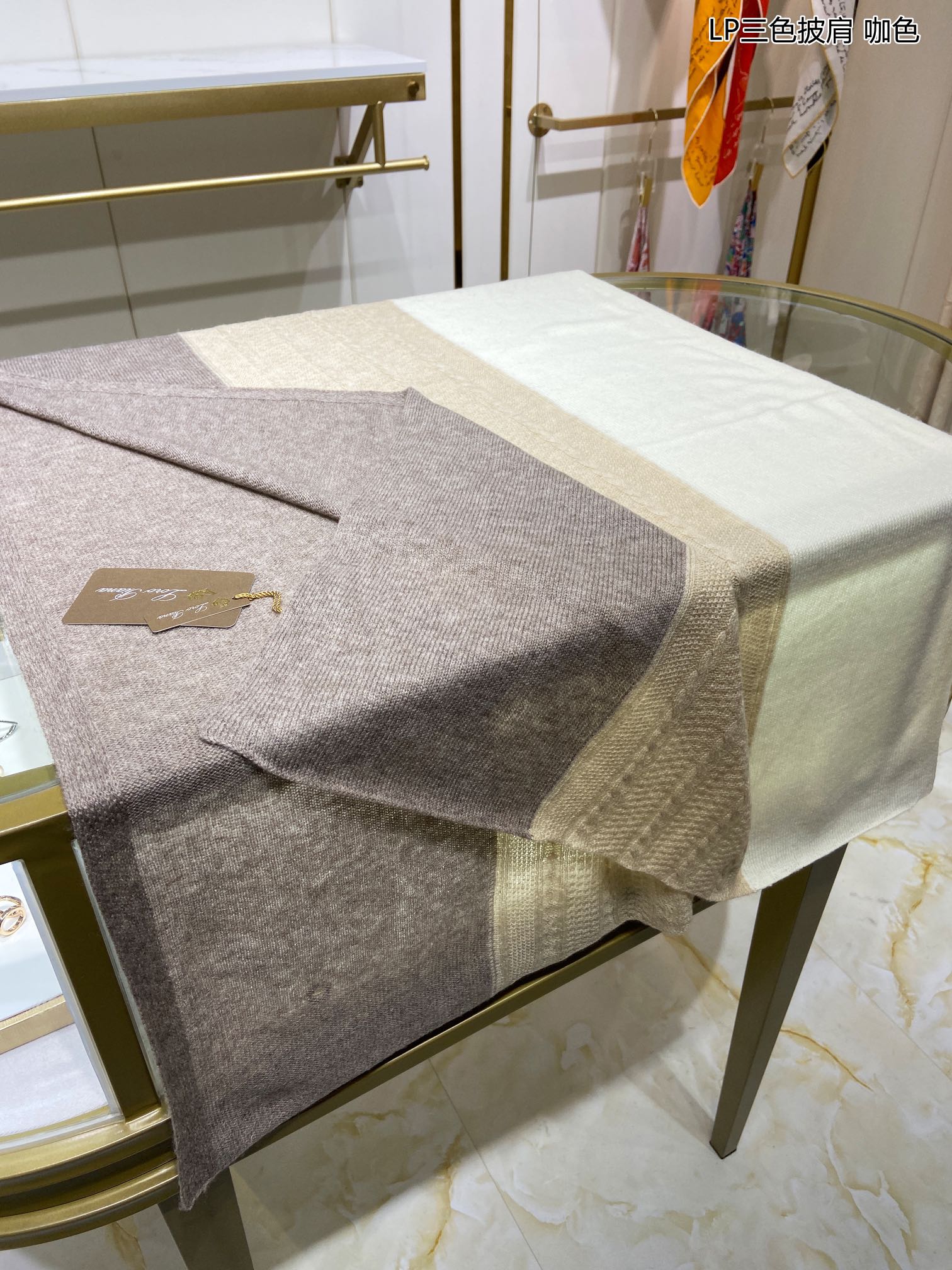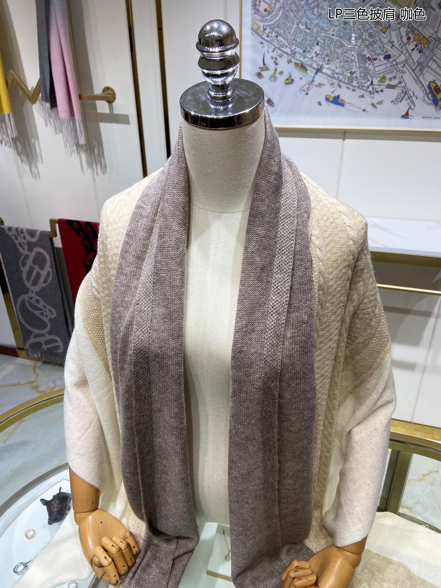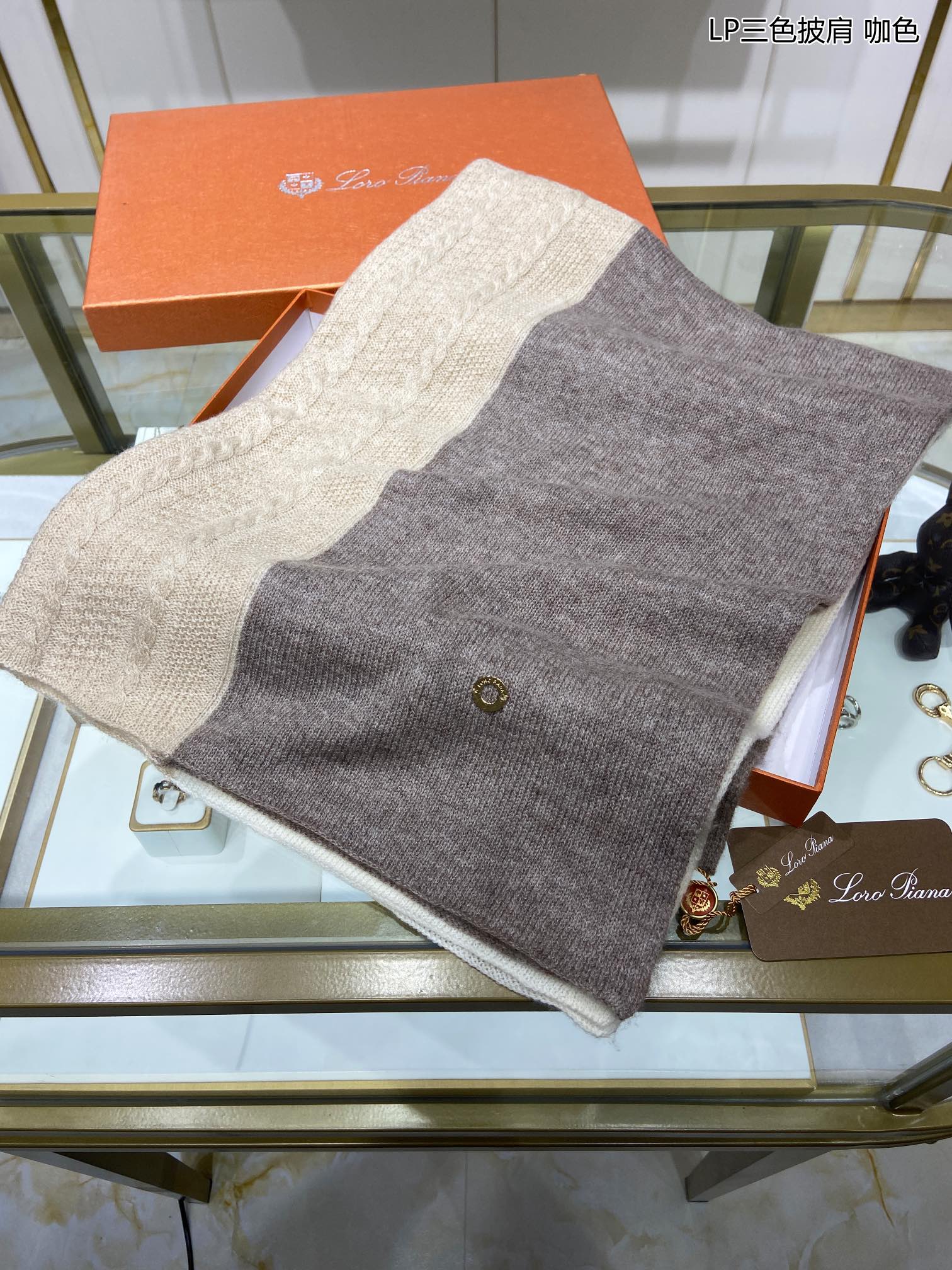 LP Scarf 190 CM In Beige White Mix Grey Brown Cashmere 649677