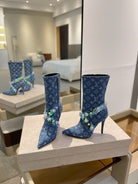 LV Ankle Boots 100mm Blue Monogram Jacquard Fabric