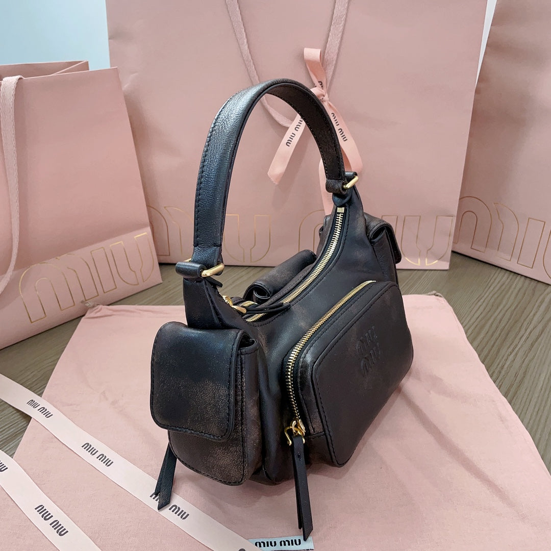 MIU POCKET 21CM SHOULDER BAG COFFE CALFSKIN