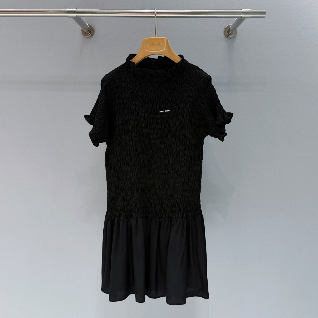 Miumiu 2026 Georgette Mini-dress Black Elastane Silk