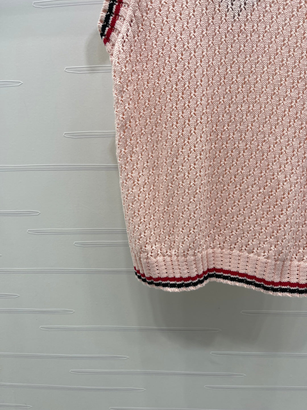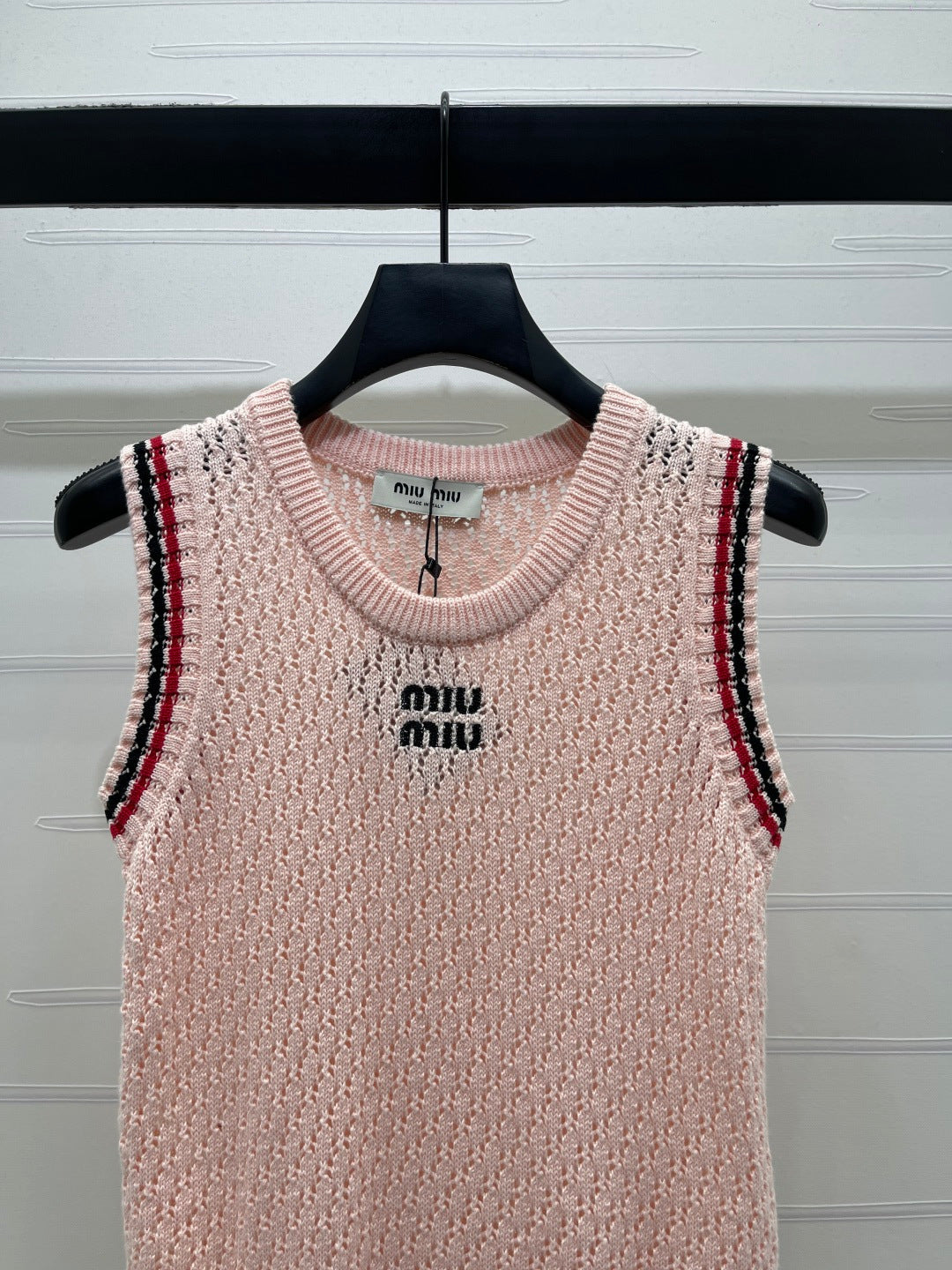 Miumiu 2026 V-neck Openwork Knit Vest Pink Wool 299316
