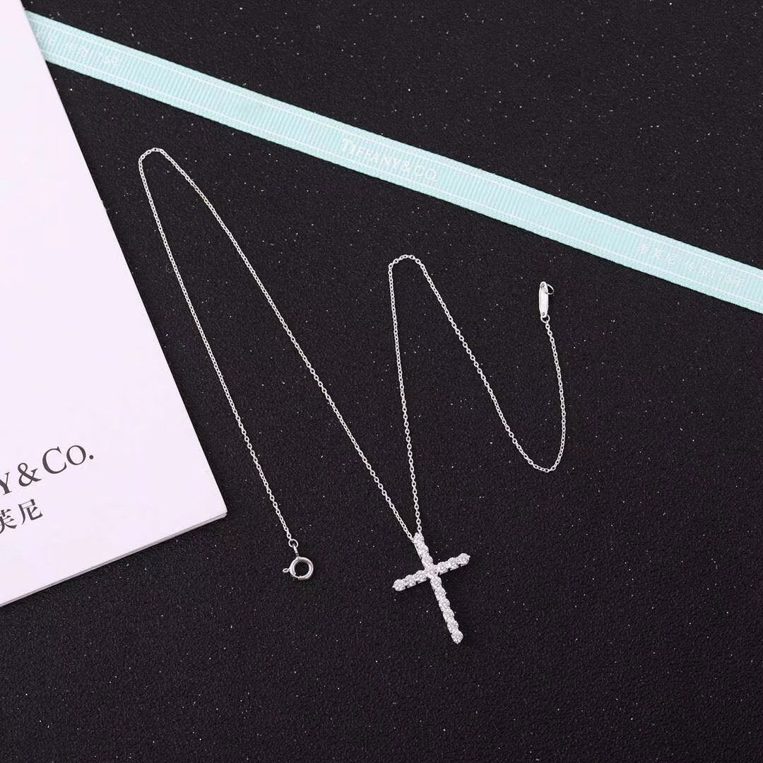 MOISSANITE STONE CROSS PENDANT NECKLACE SIMULATED DIAMOND CROSS CHOKER