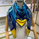 Mors a Jouets Chemise Shawl 110 CM In Blue Colorful Cashmere And Mulberry Silk 253303
