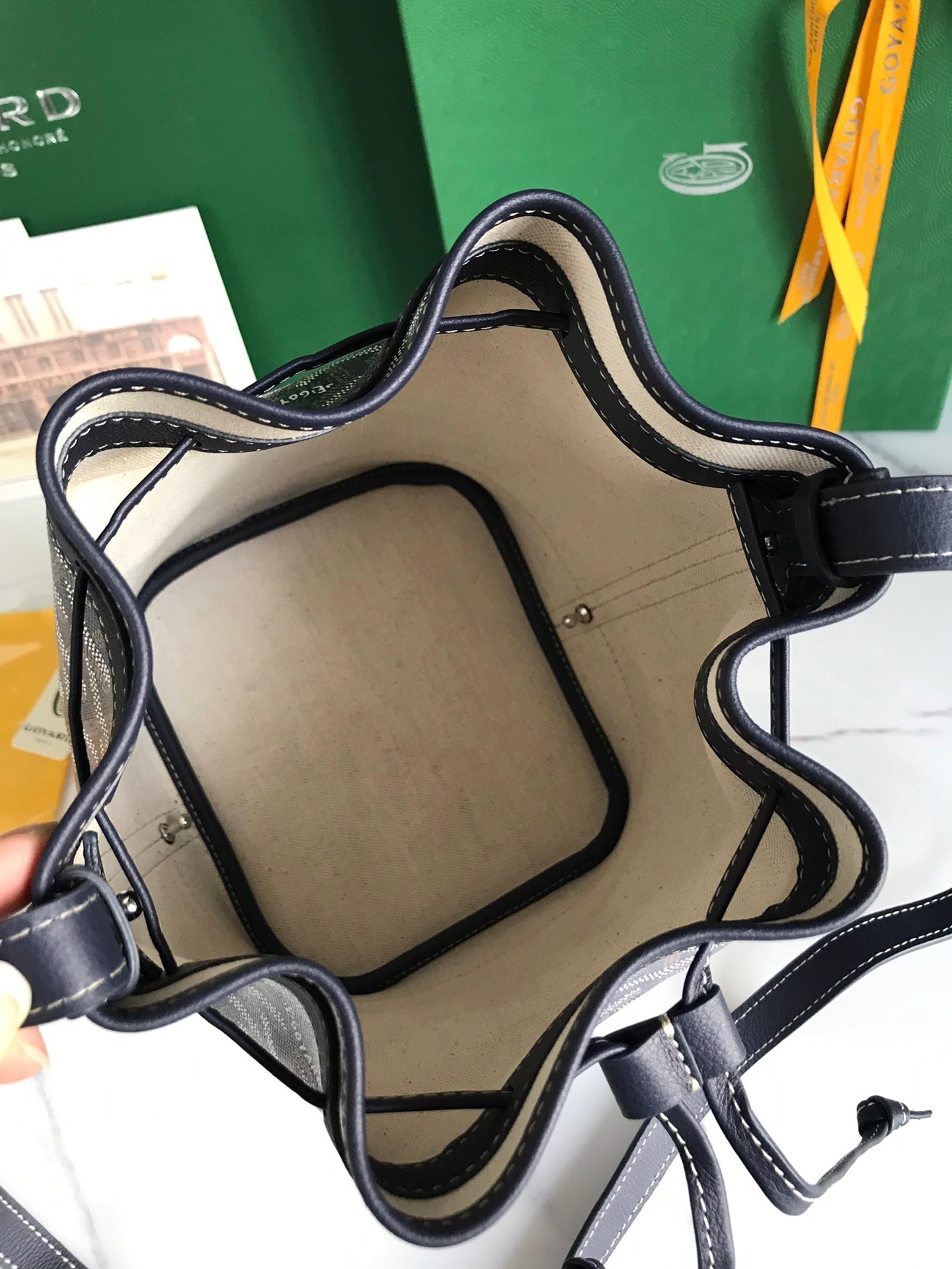 PETIT FLOT BUCKET BAG 22 IN NAVY BLUE GOYARDINE CANVAS AND LAMBSKIN TRIM