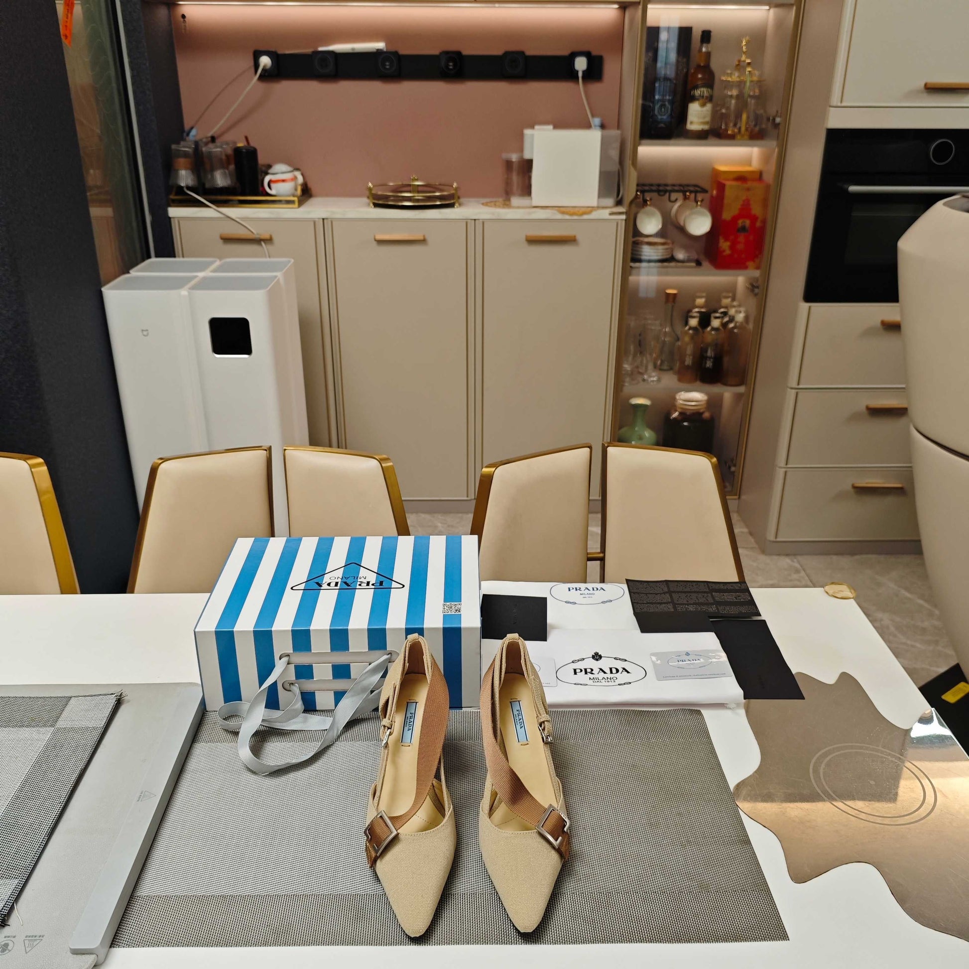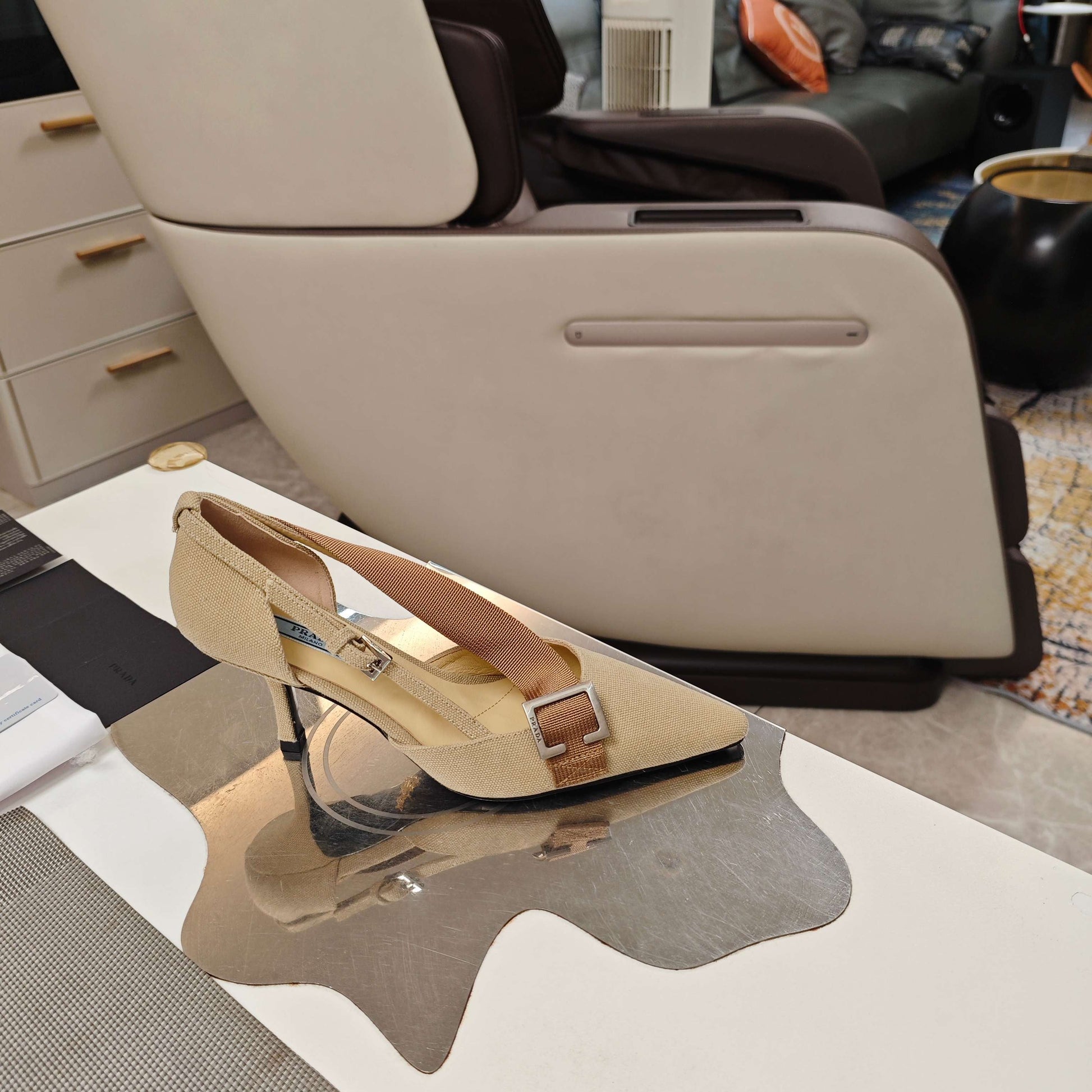 PRA 26S High Heel Pump 70 Beige Brown Canvas 630559