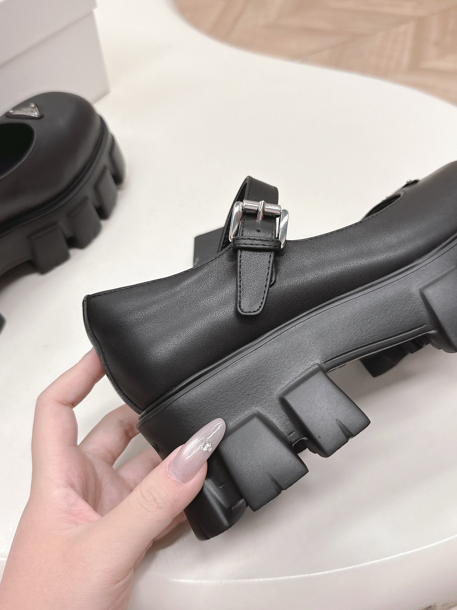 Prada Brushed Monolith Mary Janes Loafer Black Cowhide