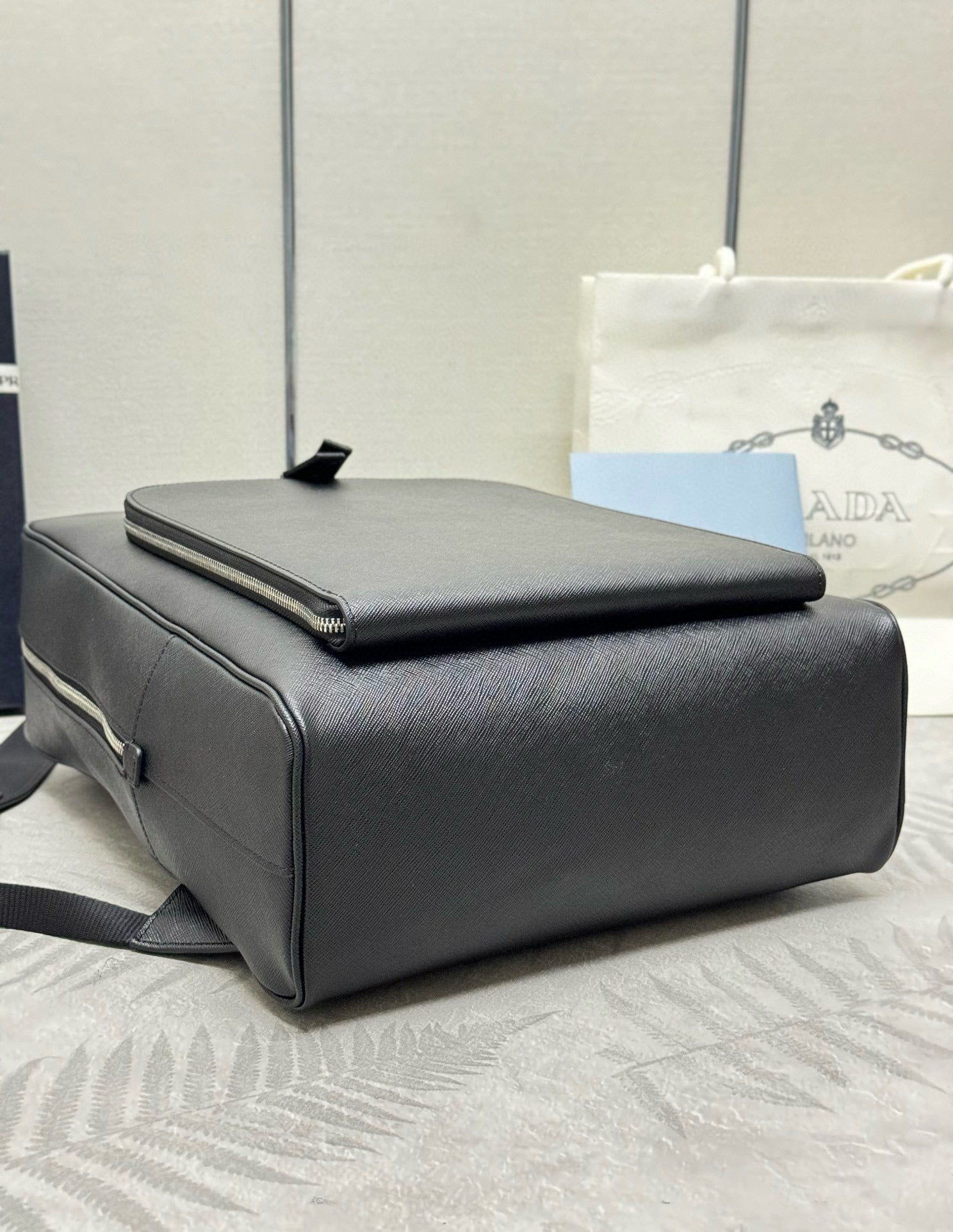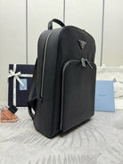 Prada Triangle-Logo Zipped Backpack Black Saffiano leather