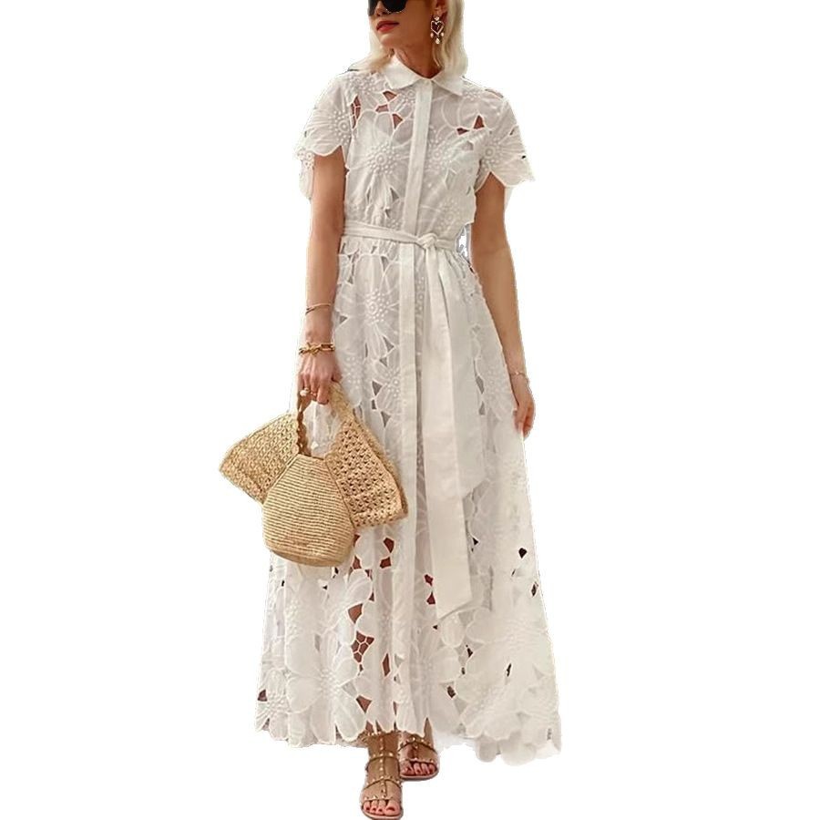 Robe Décontractée en Dentelle avec Cardigan – Style Boutonné Chic