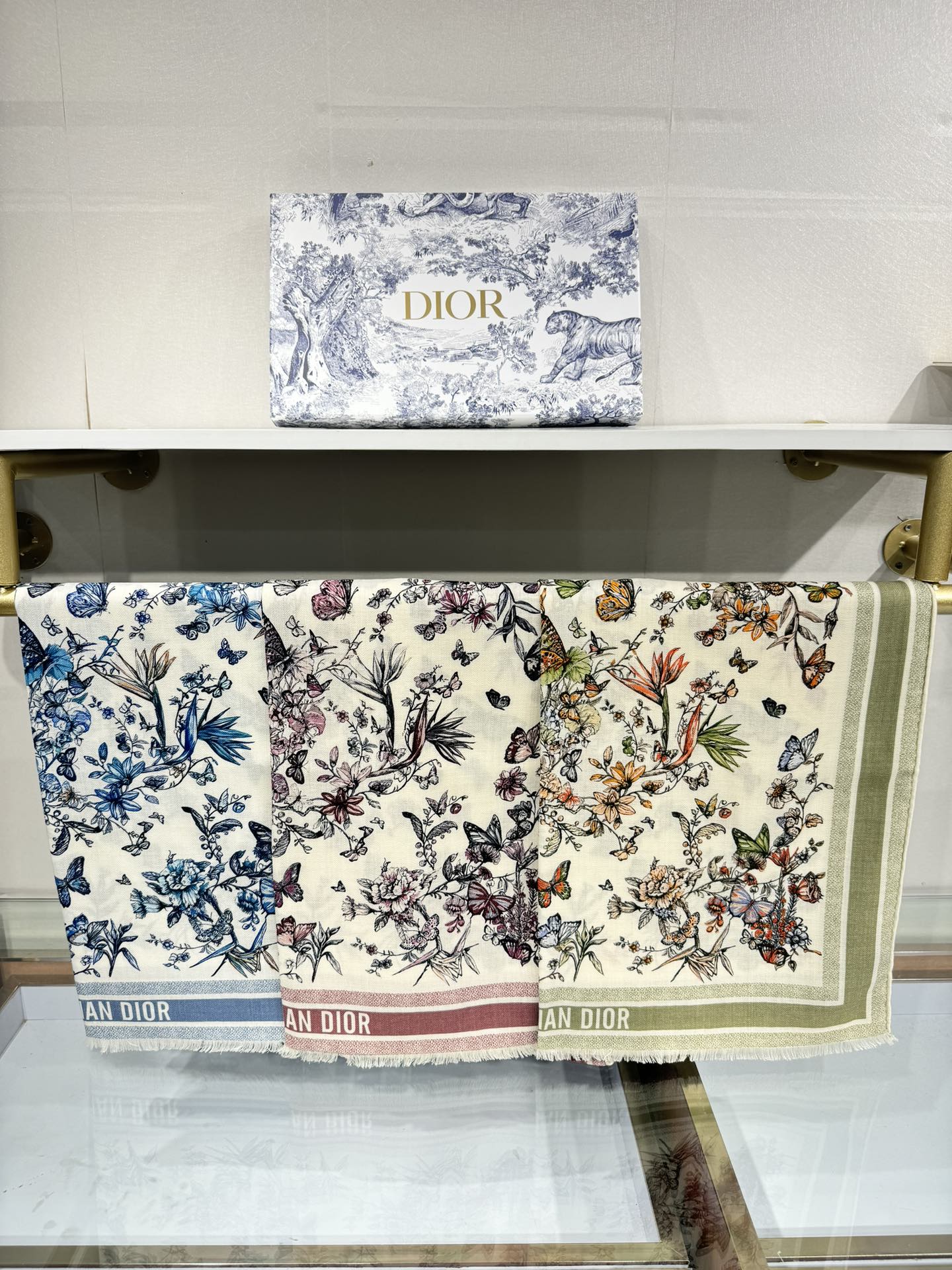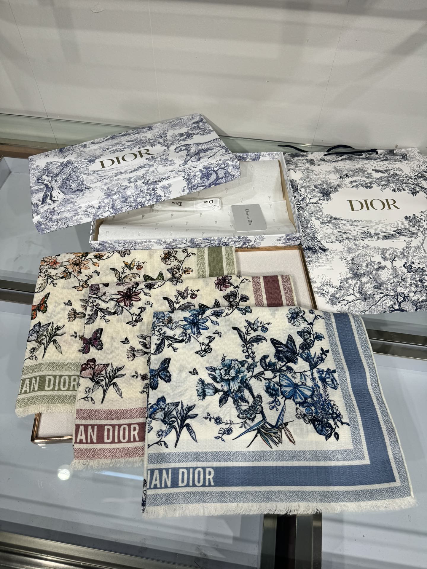 SCARF 180 CM IN WHITE MIX LIGHT BLUE CASHMERE AND SILK 408420