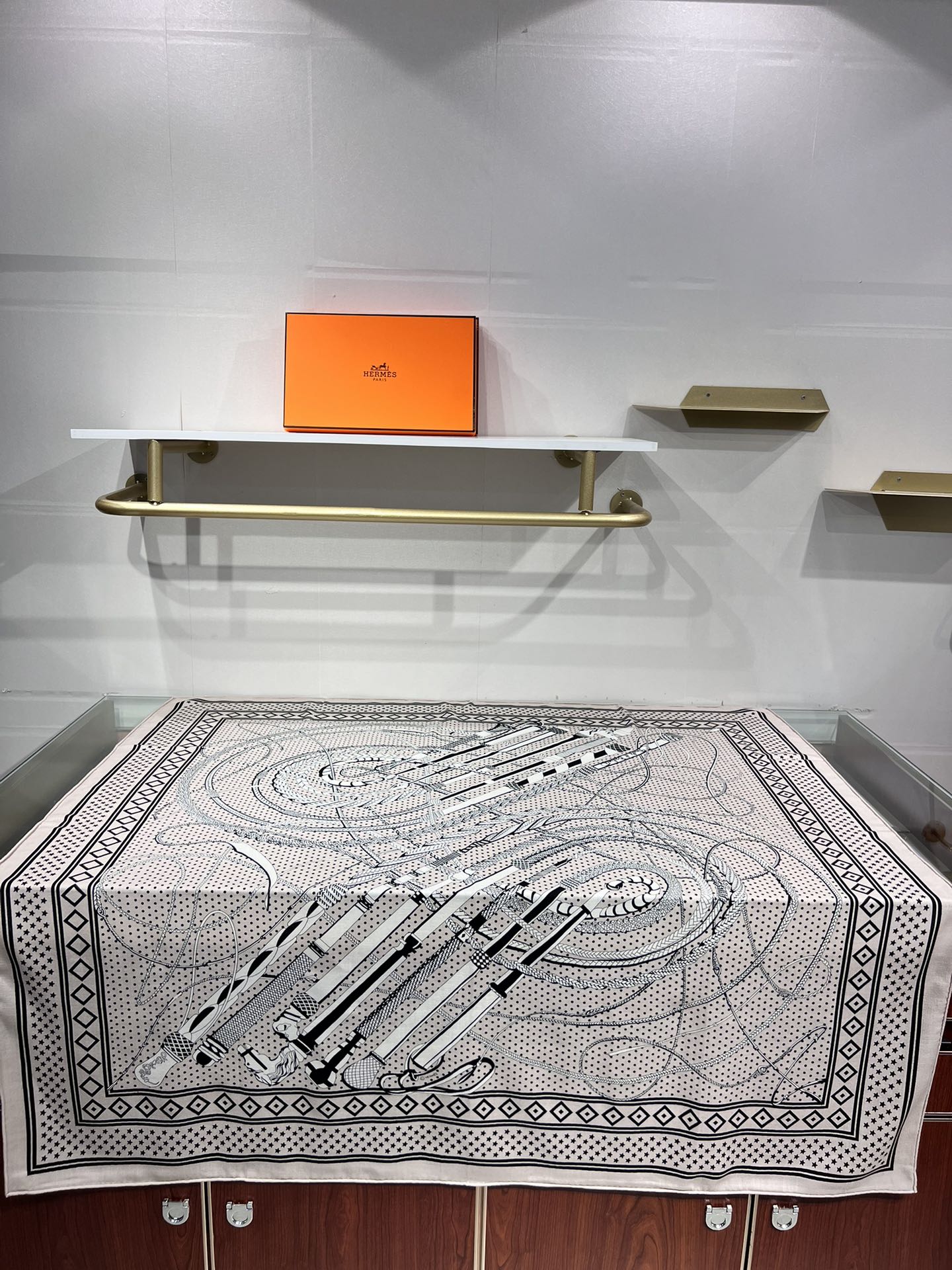 SCARF 140 CM IN WHITE MIX BLACK CASHMERE AND SILK 379766