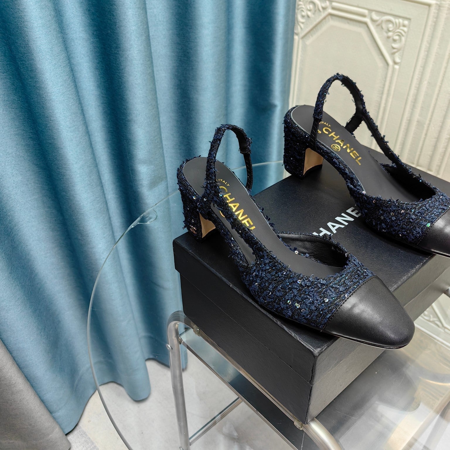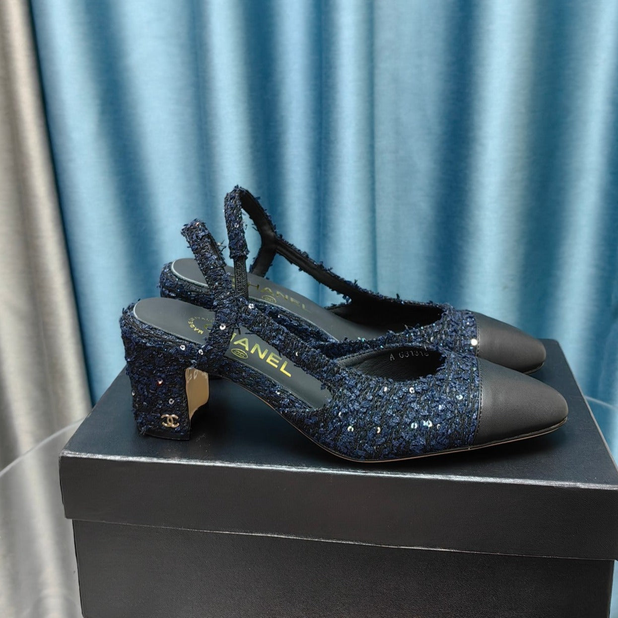 slingbacks 65 black blue tweed black calfskin