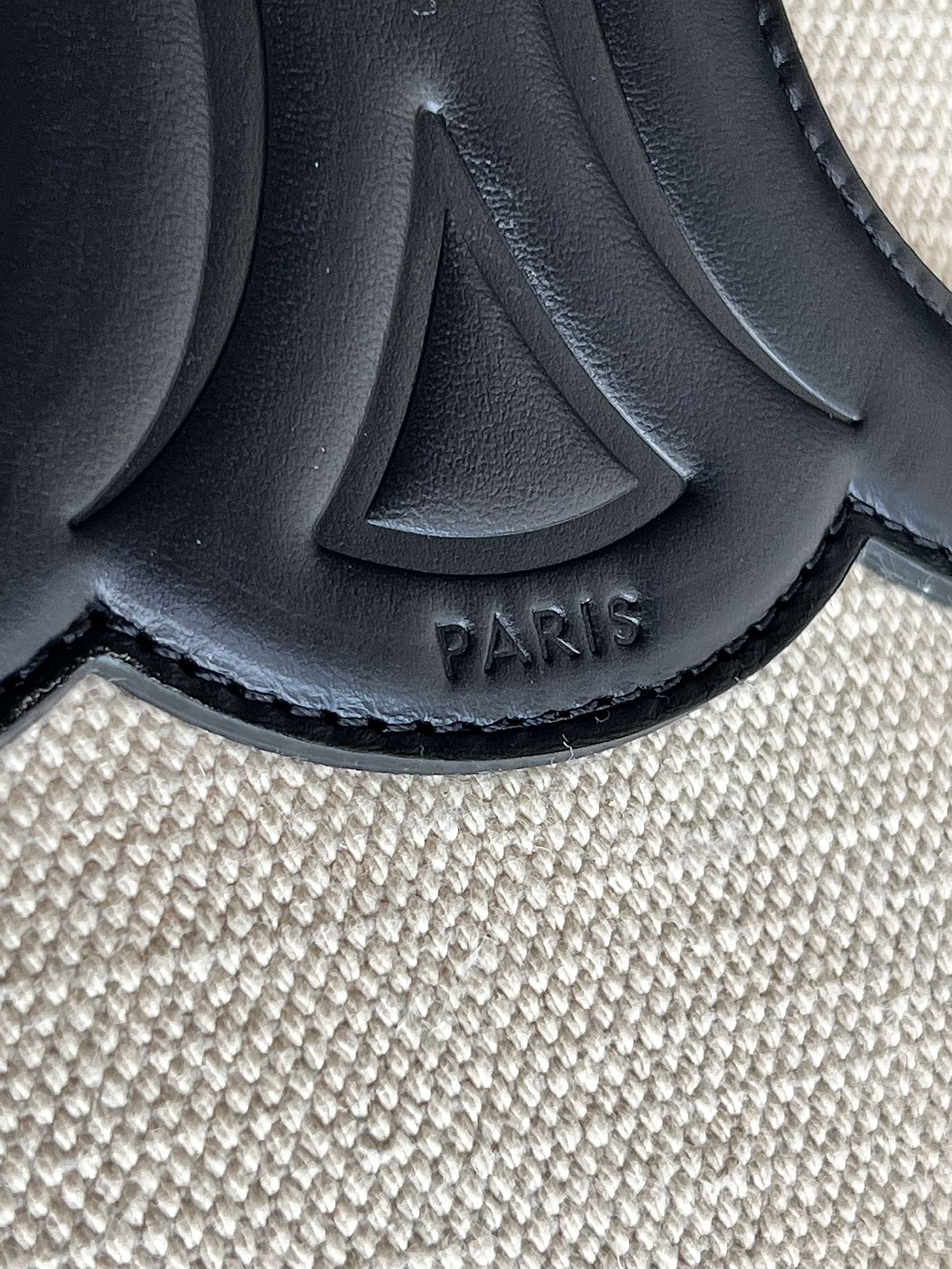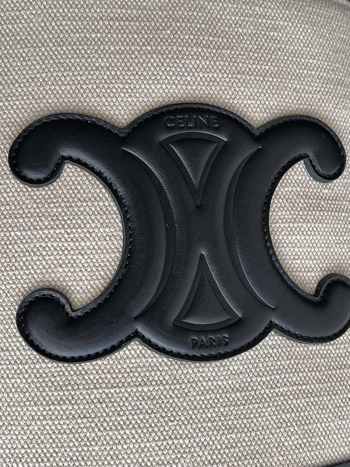 SMALL BUCKET CUIR TRIOMPHE 24CM IN STRIPED TEXTILE AND BLACK CALFSKIN