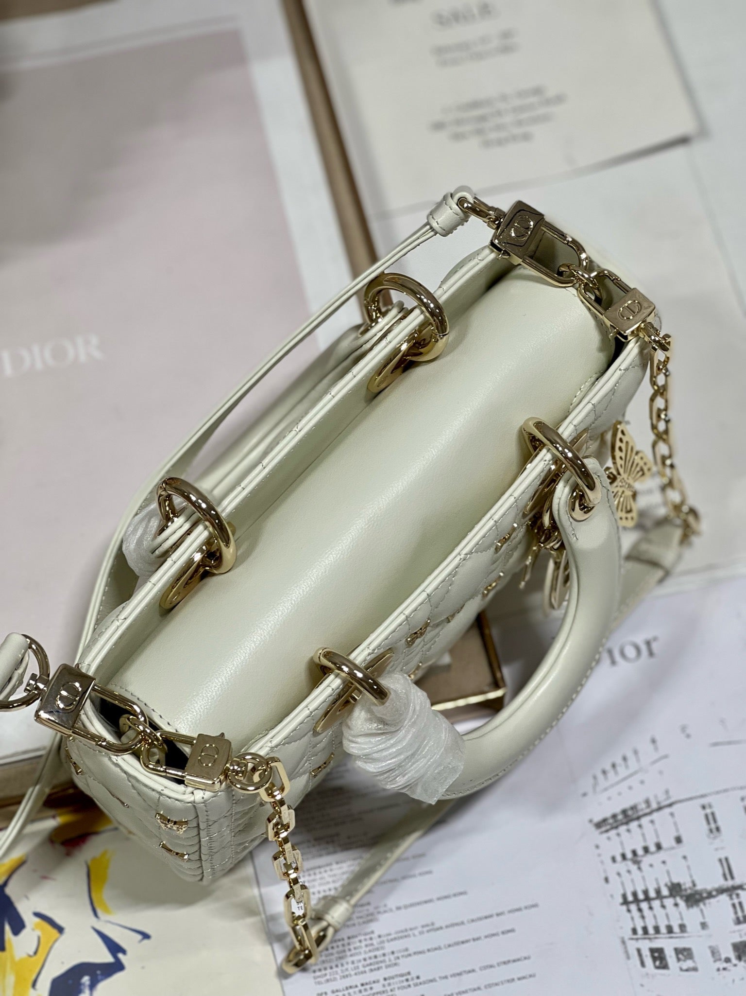 SMALL LADY D-JOY 22 BUTTERFLY STUD WHITE LAMBSKIN