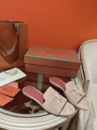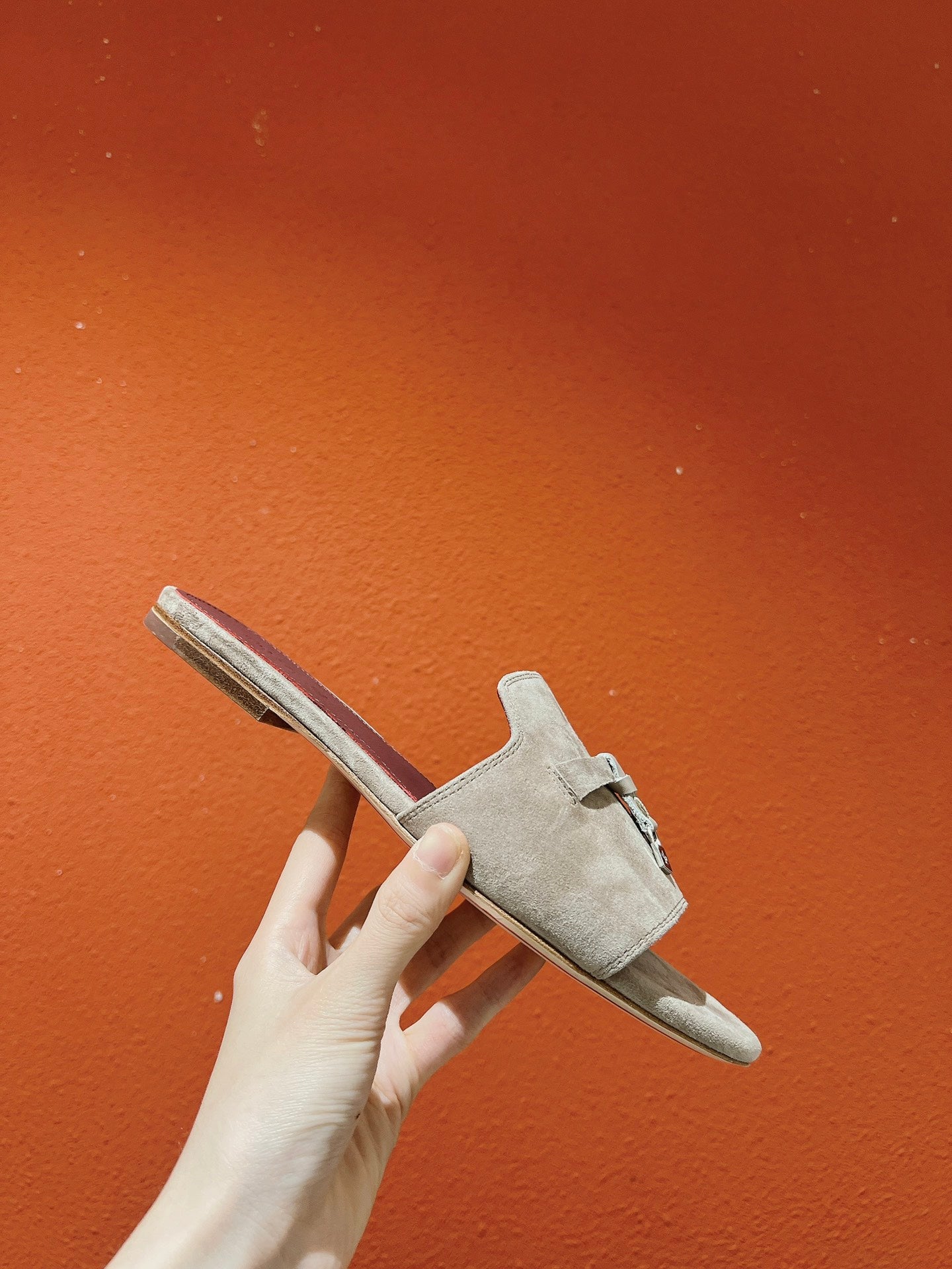 Summer Charms Sandals in Taupe Suede Maroon Lambskin
