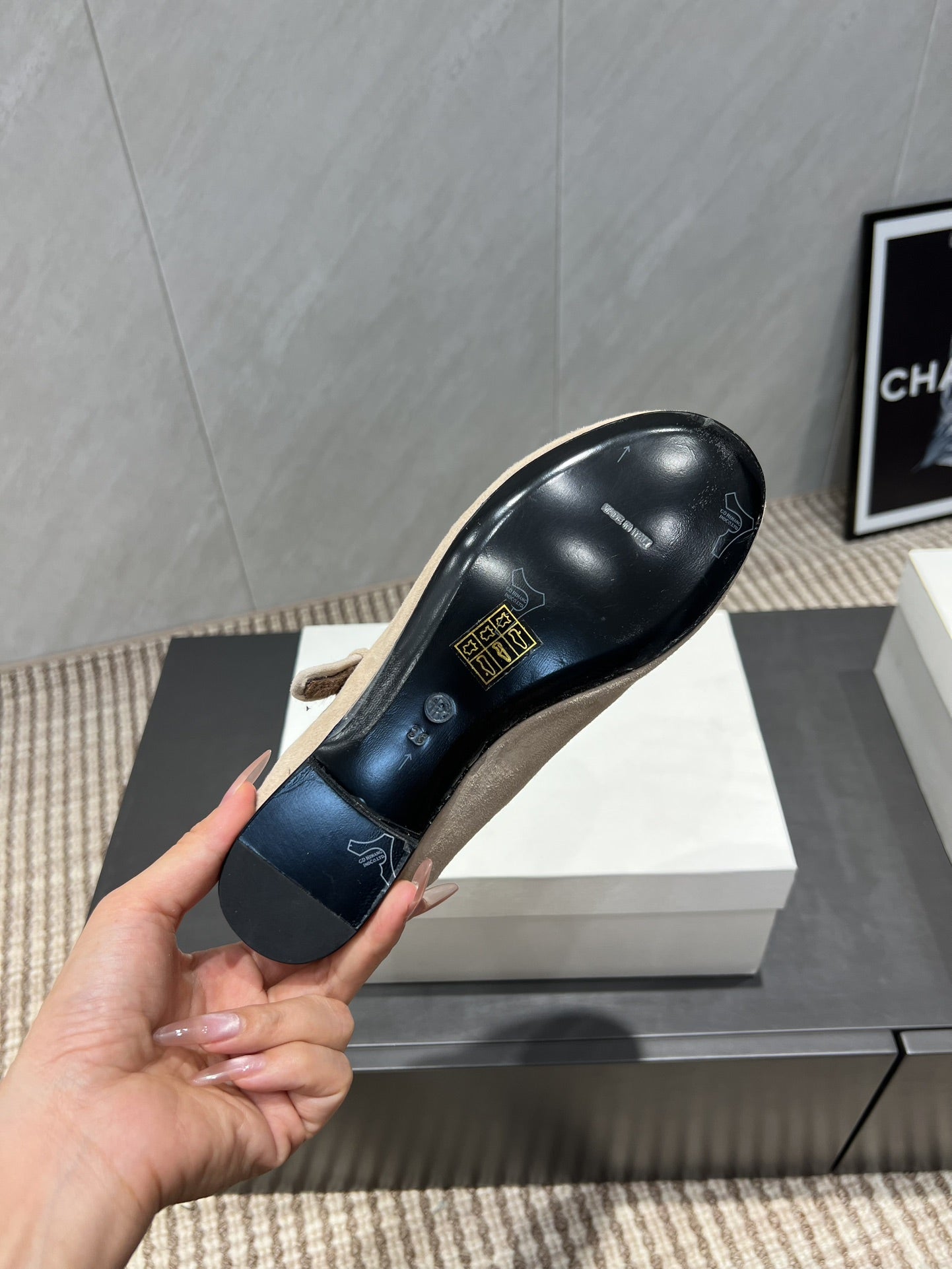 The Row 2025 Round Toe Ballet Flat Beige Suede Fleece 540490