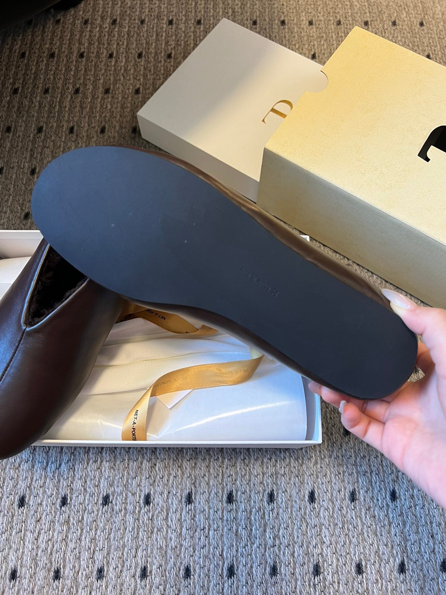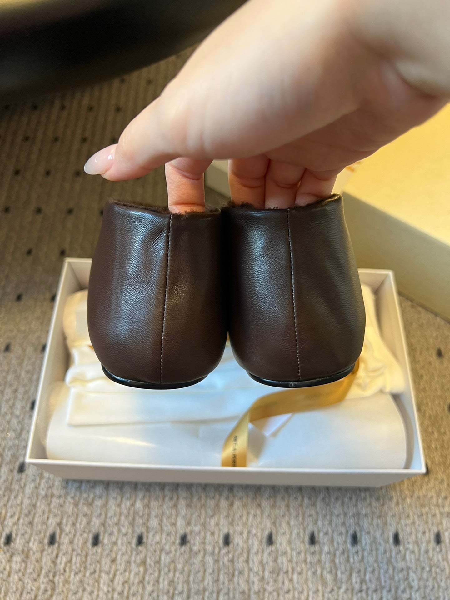 The Row 2025 Stella slip-on Shoe Dark Brown Sheepskin Wool 561641
