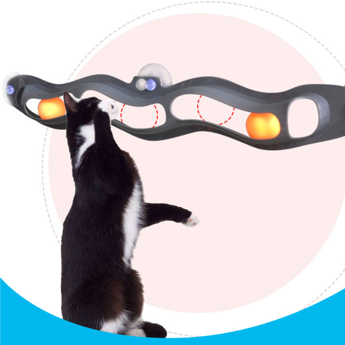 - Les balles se déplacent à l'intérieur du rail lorsque le chat les pousse avec sa patte.