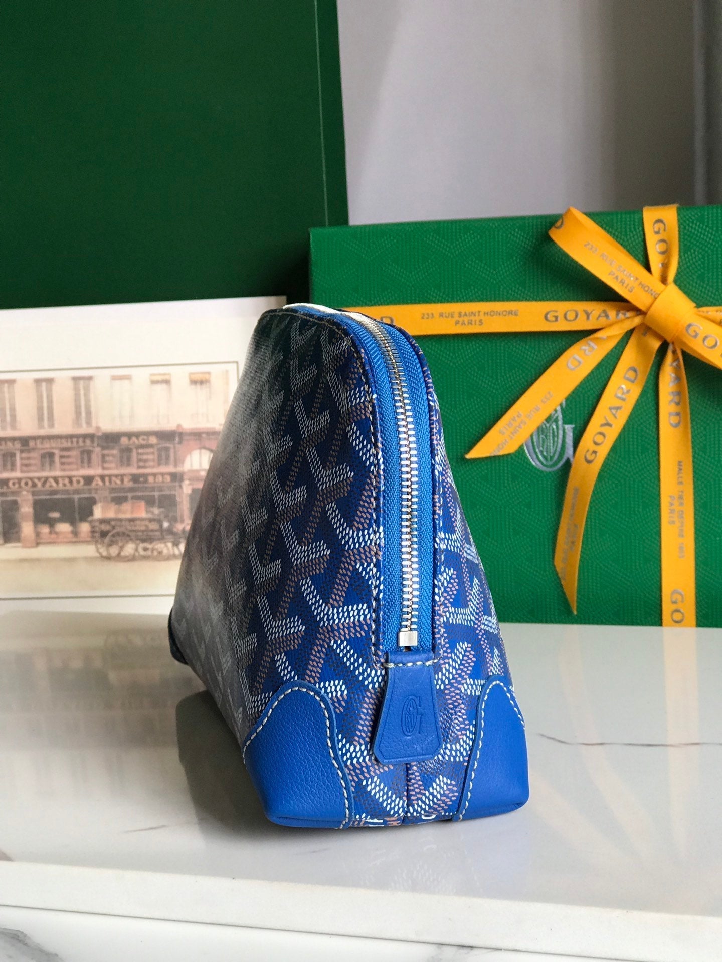 VENDÔME COSMETIC POUCH 17 IN SAPPHIRE BLUE GOYARDINE CANVAS AND CALFSKIN TRIM
